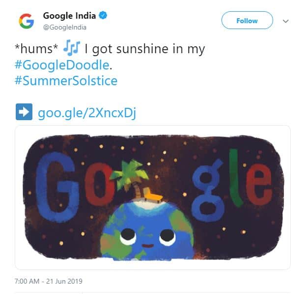 “*hums* I got sunshine in my #GoogleDoodle #SummerSolstice,” Google India posted on Twitter.
