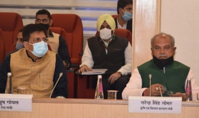 Minister of Food, Consumer Affairs and Public Distribution, Railways and Commerce Piyush Goel and Minister of State for Commerce Som Prakash and senior officials from the Agriculture Ministry and the Ministry of Food Consumer Affairs and Public Distribution were also present in the meeting joined by 40 representatives of farmers unions across the country.