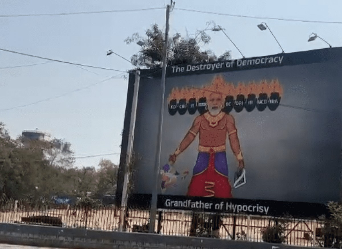 Hyderabad: On the day of the ED probe into BRS MLC K Kavitha in Delhi, BRS has put up posters across Hyderabad with one of them depicting Prime Minister Narendra Modi as the ten-headed Ravana from Hindu mythology.
