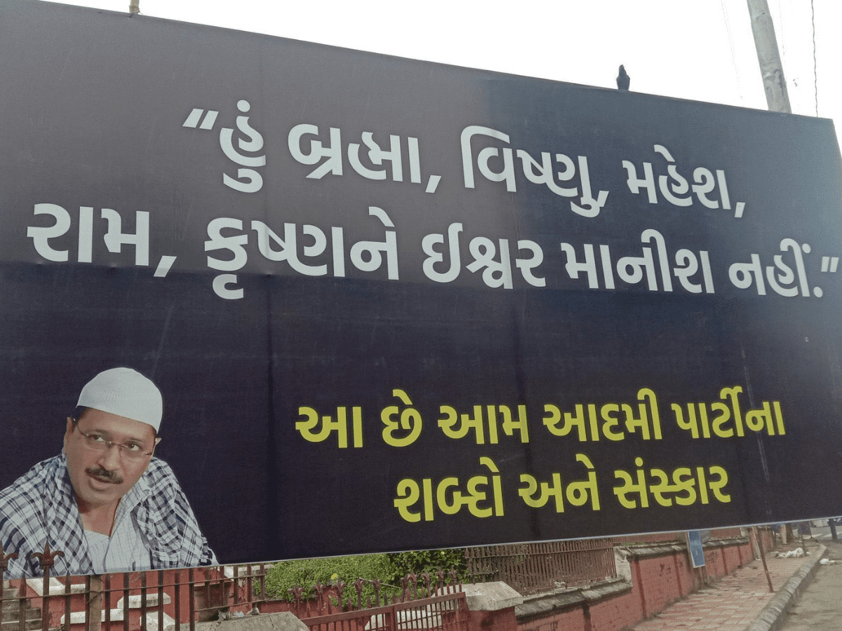 Ahmedabad: Banners terming Delhi Chief Minister Arvind Kejriwal as “anti-Hindu” and showing him wearing a skull cap surfaced in several prominent cities in Gujarat on Saturday, the day the AAP leader is on a visit to the poll-bound state to campaign for his party ahead of the Assembly elections.
