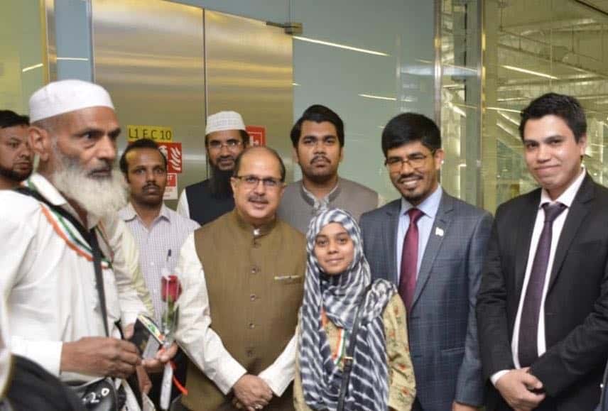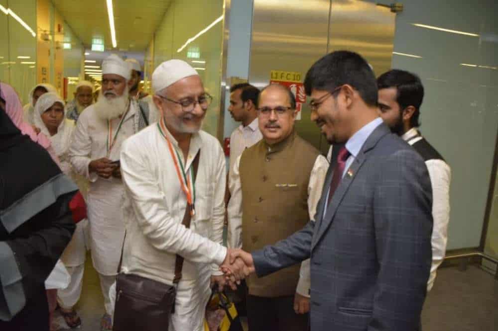 Haj 2019’s first Flight from India arrived in Madinah today at 3:40 AM carrying 419 Hajis from Delhi. Ambassador Dr. Ausaf Sayeed and Consul General Mr. Md. Noor Rahman Sheikh received the Hajis at Madinah Airport. Consul (Haj) Mr. Y. Sabir was also present. This year, 200,000 Indians will be arriving for Haj.