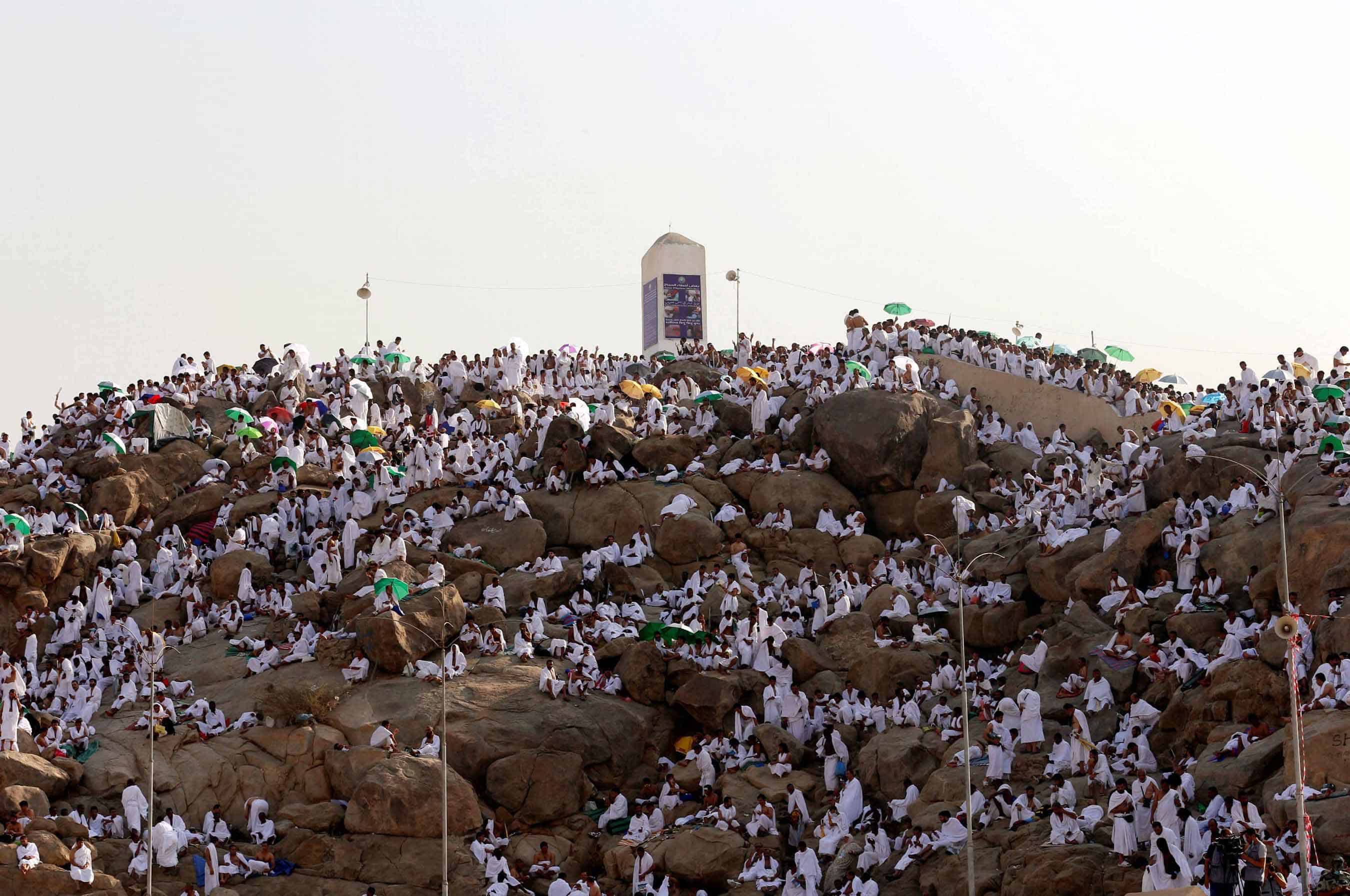 Muslim pilgrims gather on Mount Mercy on the plains of Arafat during the annual haj pilgrimage, outside the holy city of Mecca, Saudi Arabia September 11, 2016. REUTERS