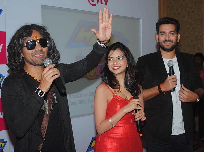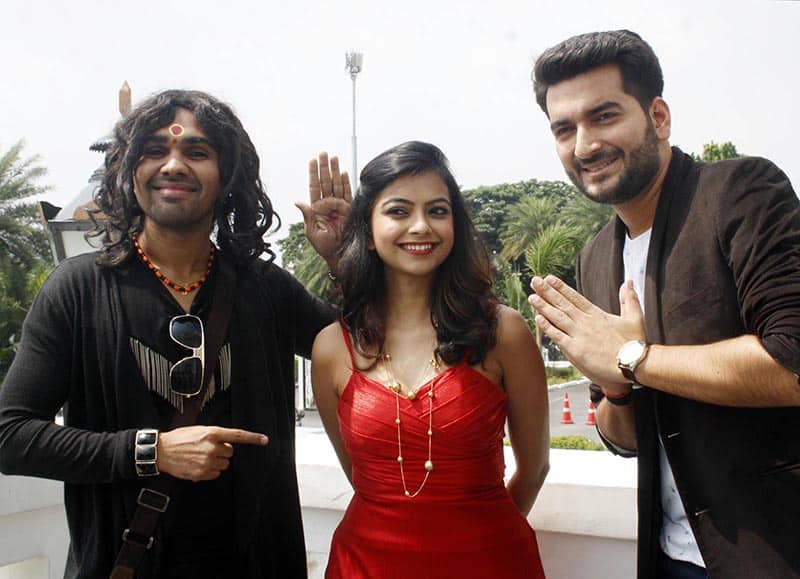 Actors Monica Murthy, Abhimanyu Kak and Jaswant Singh Rathore during promotion of upcoming TV serial Happy Hours in Lucknow on Saturday. UNI PHOTO