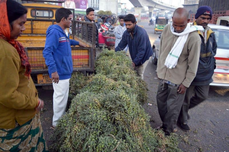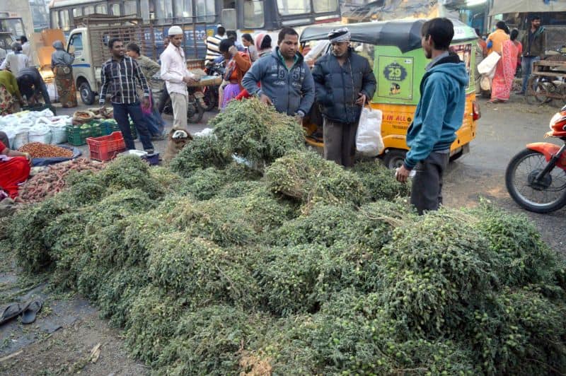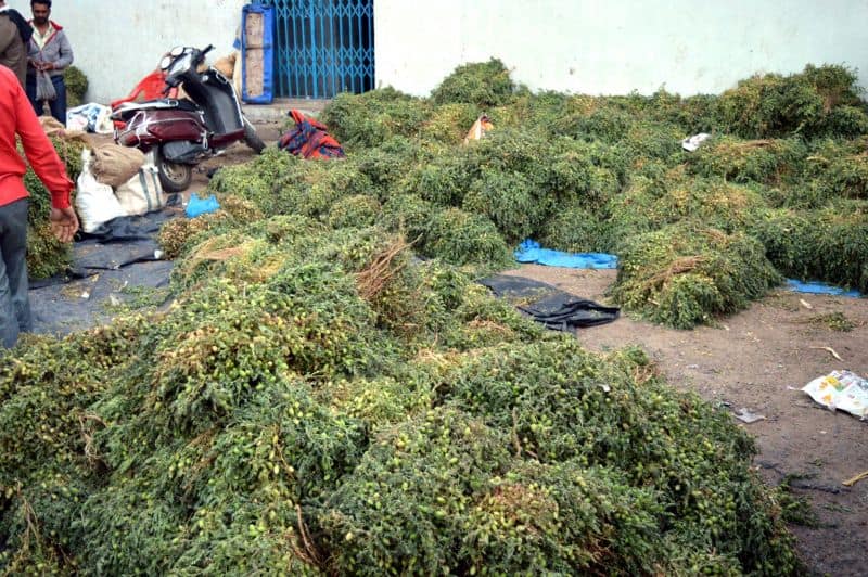Vendors separating the Green garbazo beans (Hari Boot) to load it on the carts and subsequently to the market. (Pics. Murli)