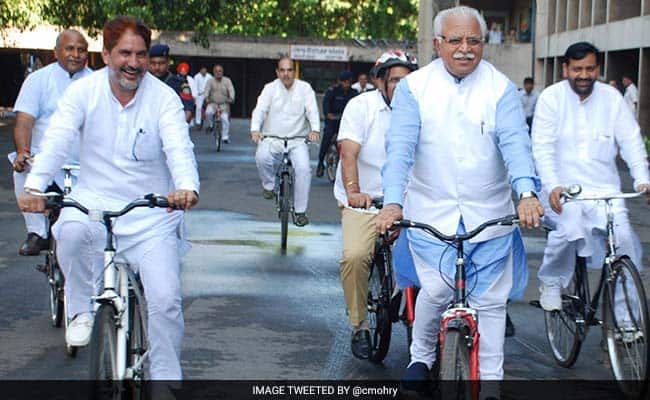Sporting a kurta-payjama and half-jacket, Mr Khattar used a cycle from his official residence in Sector-3 in Chandigarh to the Haryana assembly complex, covering just over one kilometre.