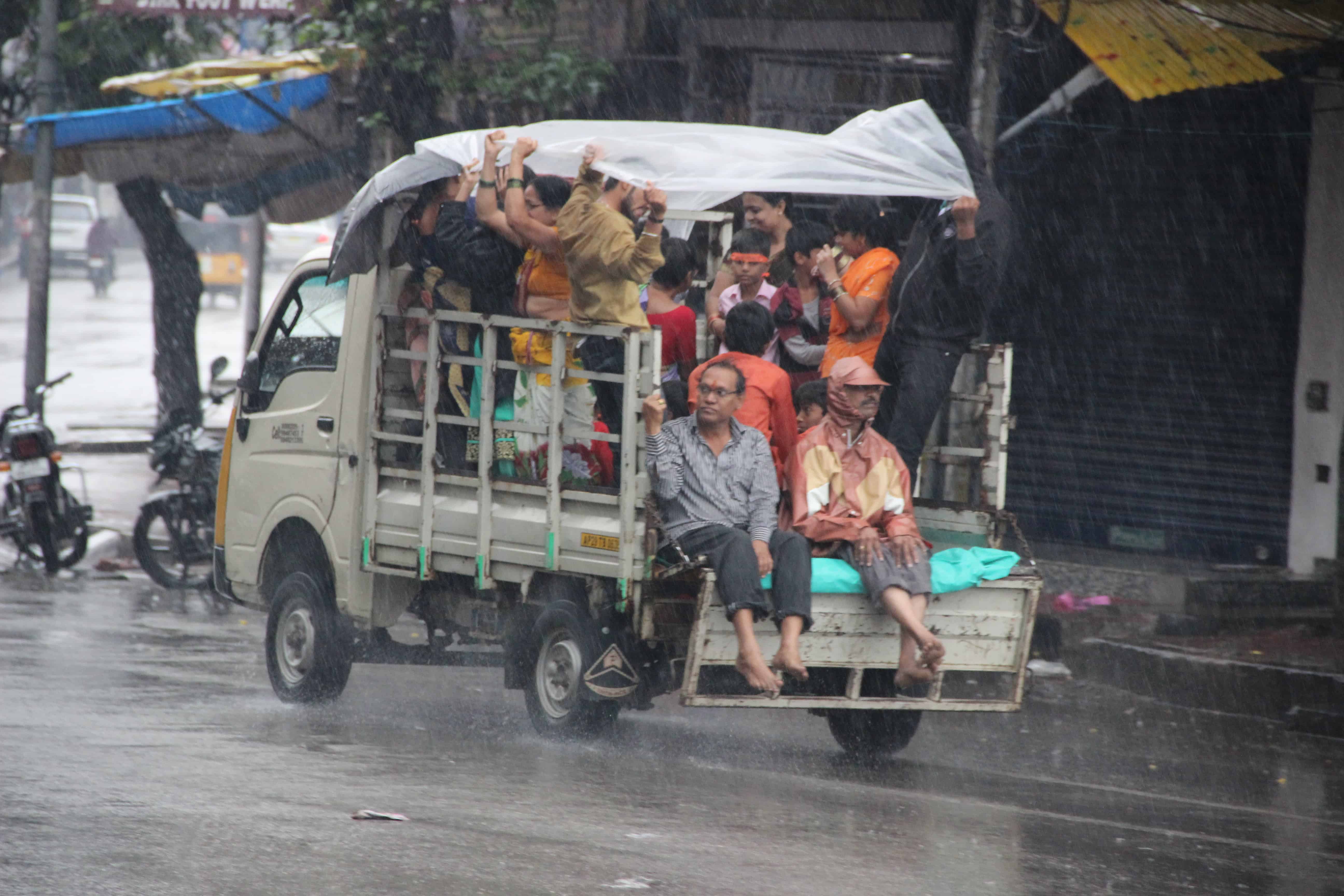 Ganesh visarjan came to a standstill as heavy rain continues to lash Hyderabad on Thursday. Low-lying areas were inundated, drain water gushed out of sewerage lines on main roads and cellar areas of apartments in colonies filled with rain and drain water. Photo:Laeeq