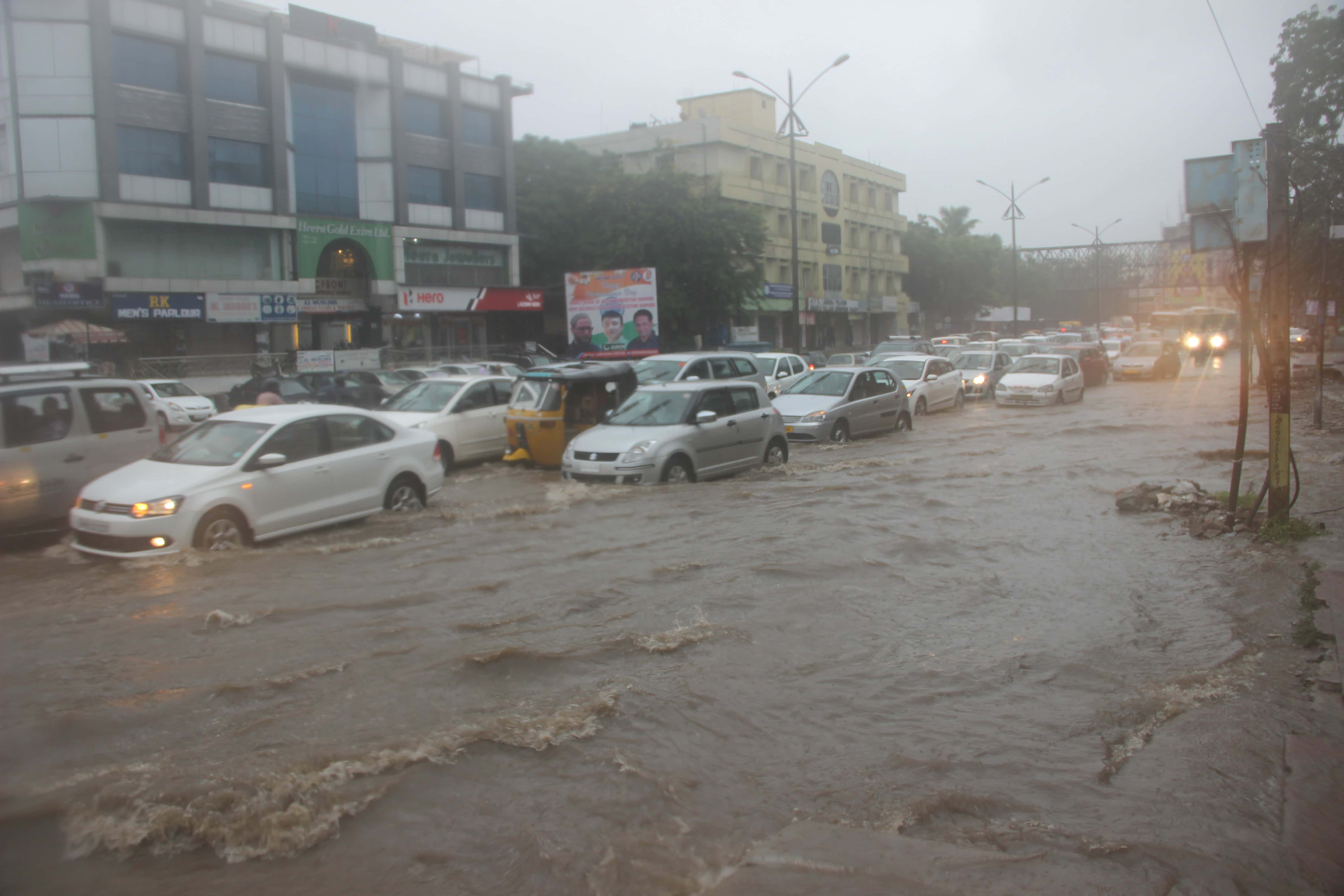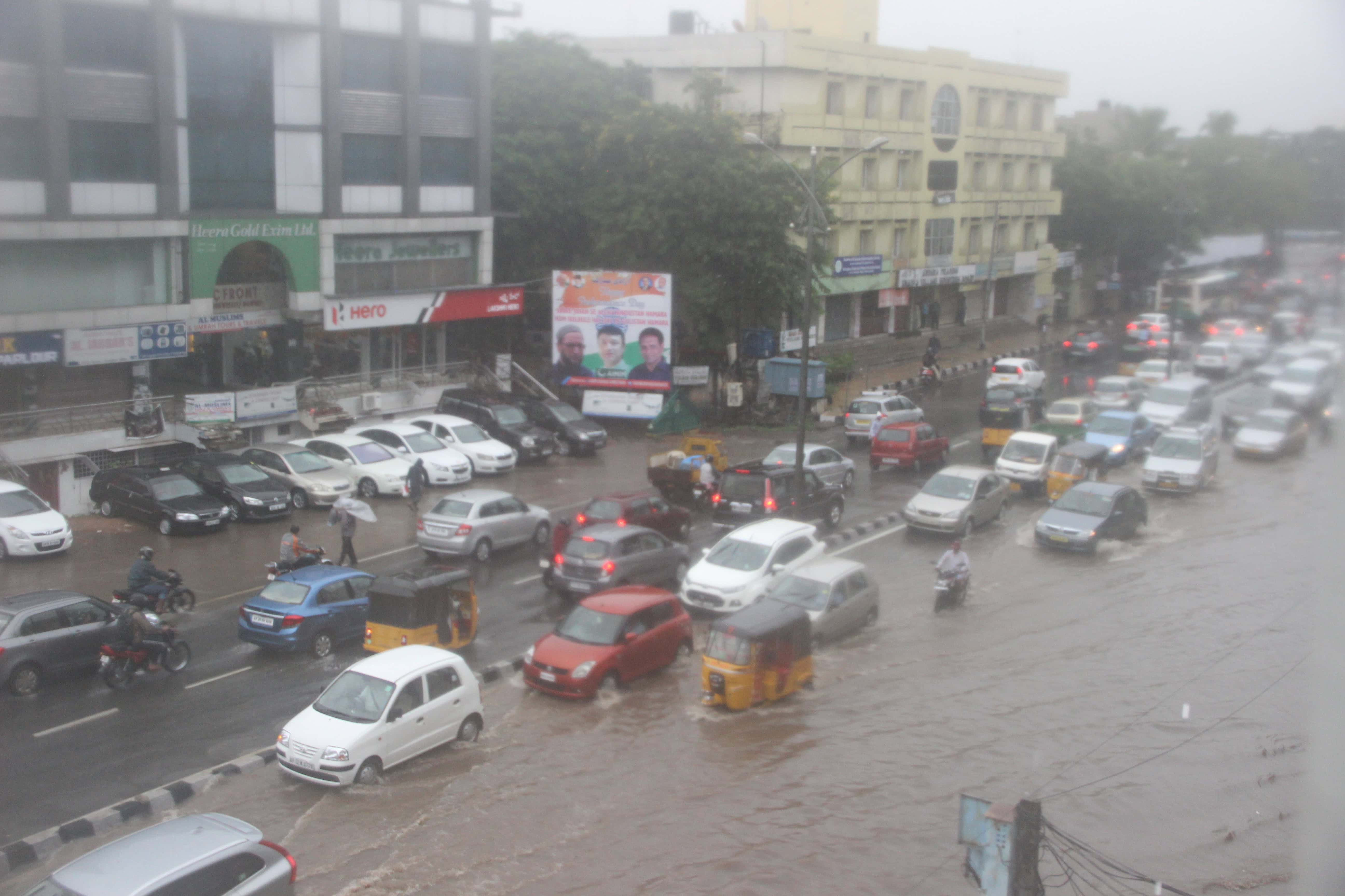 Heavy rain disrupts life in Hyderabad August 31, 2016 by laeeq Heavy rain lashed Hyderabad and its environs from early Wednesday morning. House collapses, water logging of roads, and inundation of several slums were reported in different parts of the city.(Pic. Laeeq)