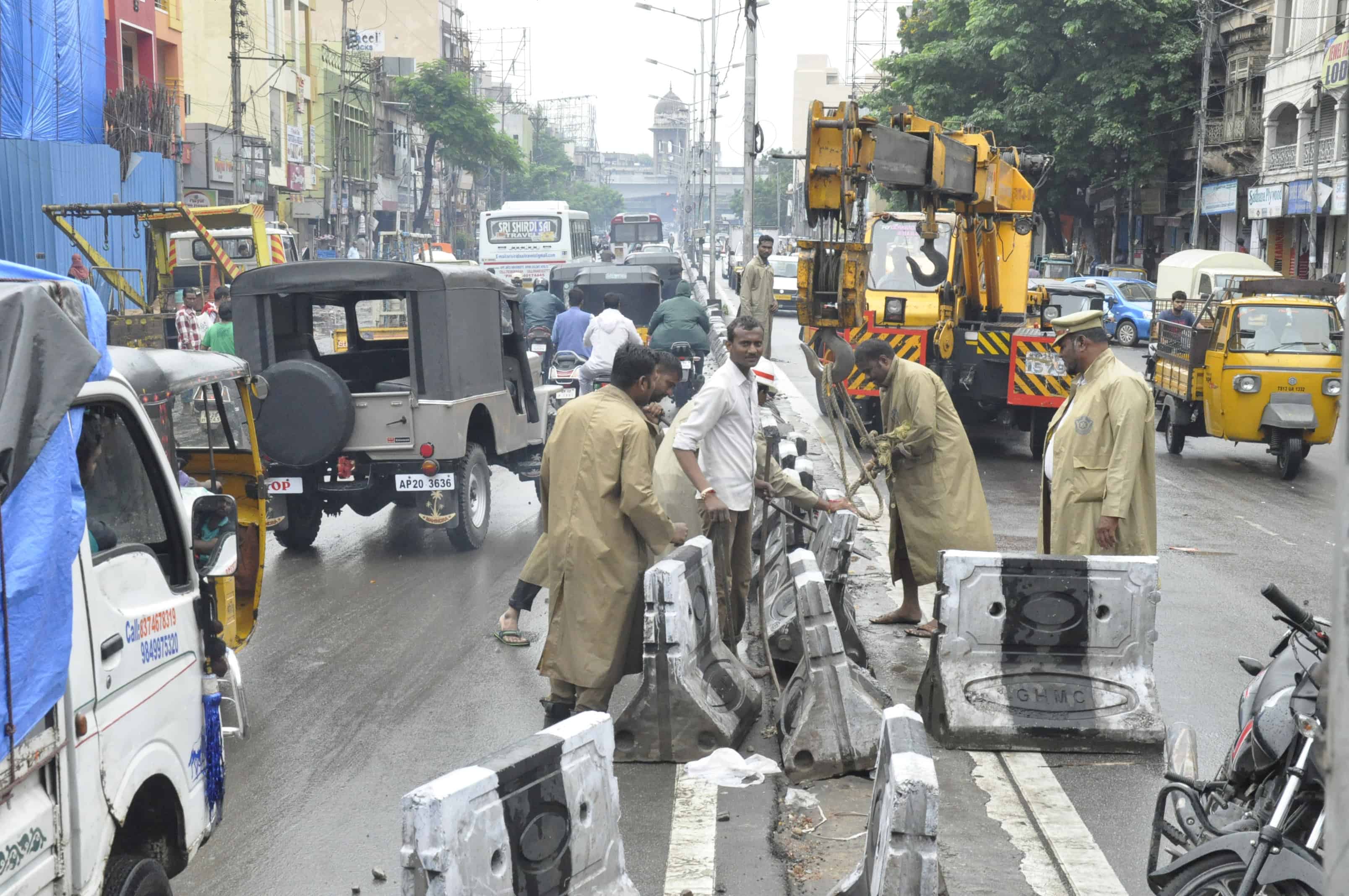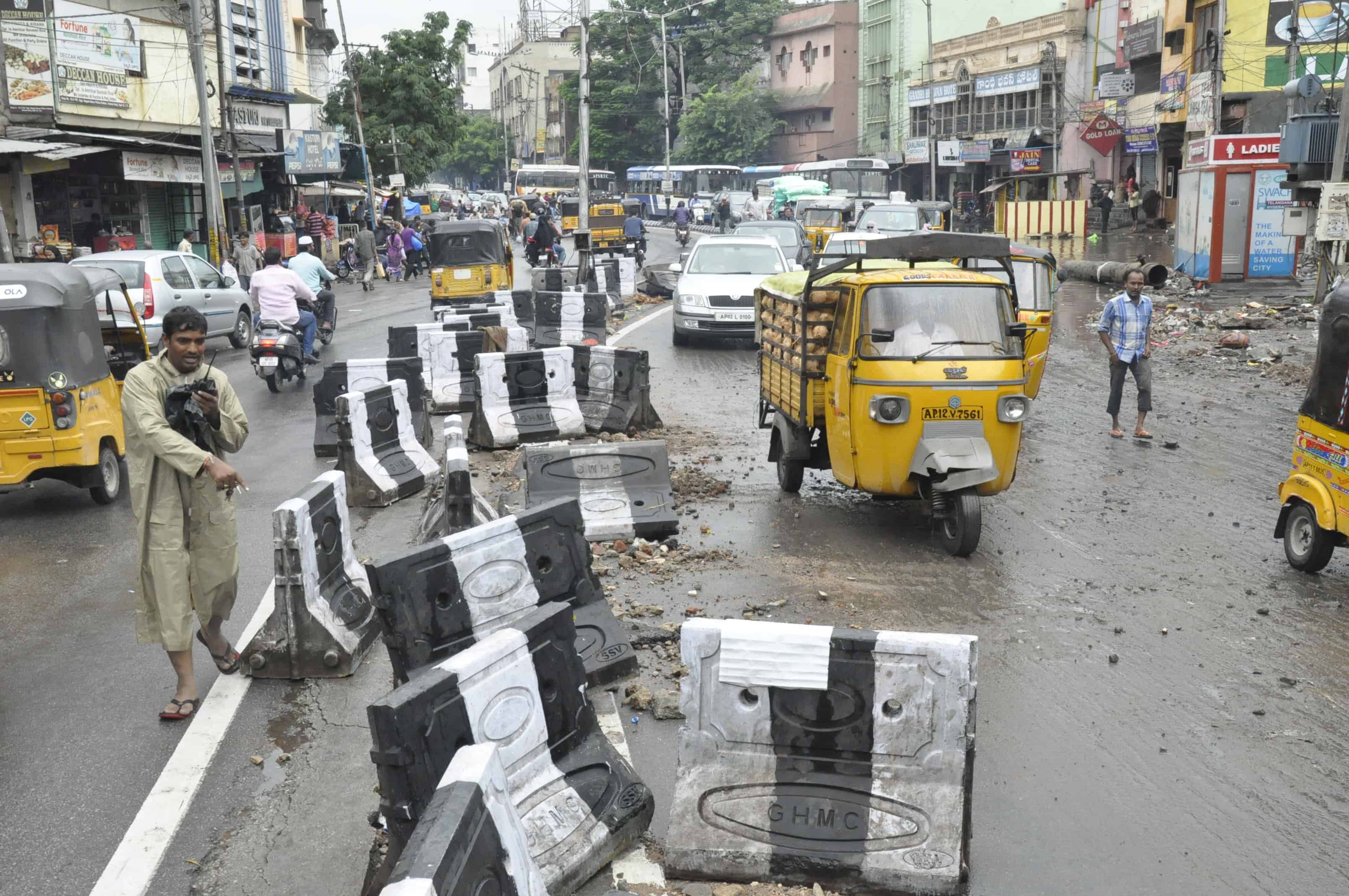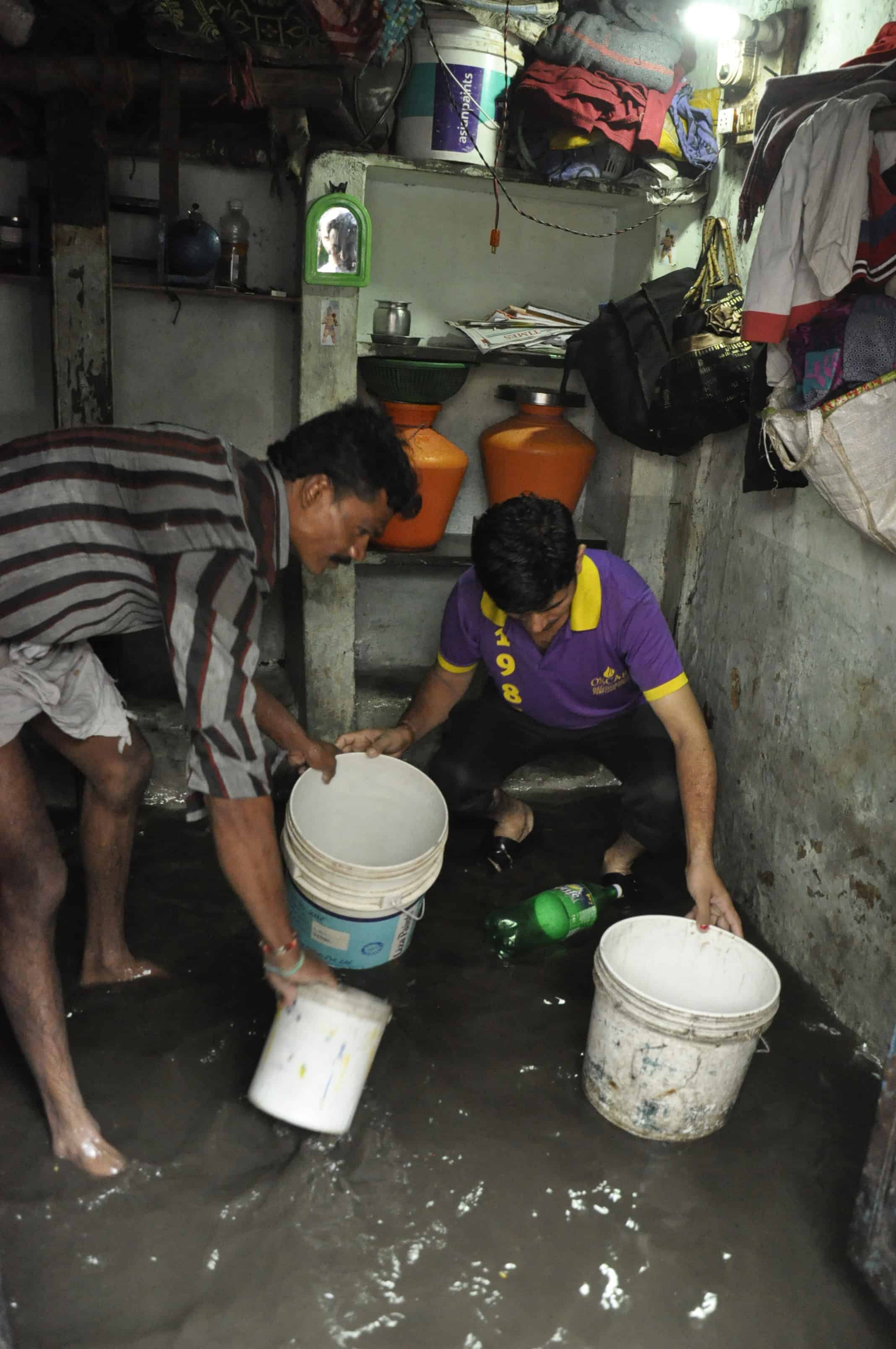 Heavy rain which lashes Hyderabad and its environs from early Wednesday morning. House collapses, water logging of roads, and inundation of several slums were reported in different parts of the city.(Pic. Mazher)