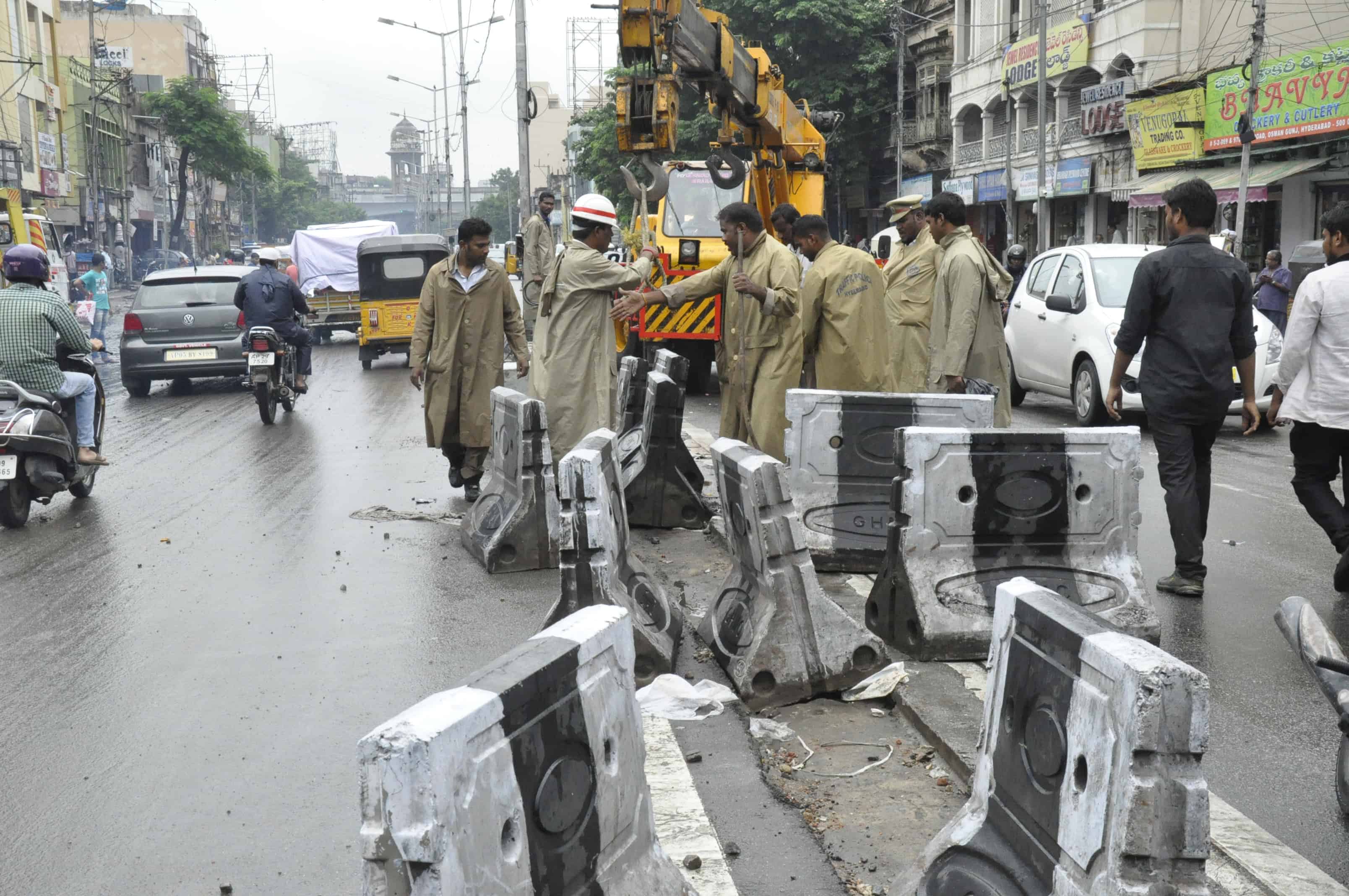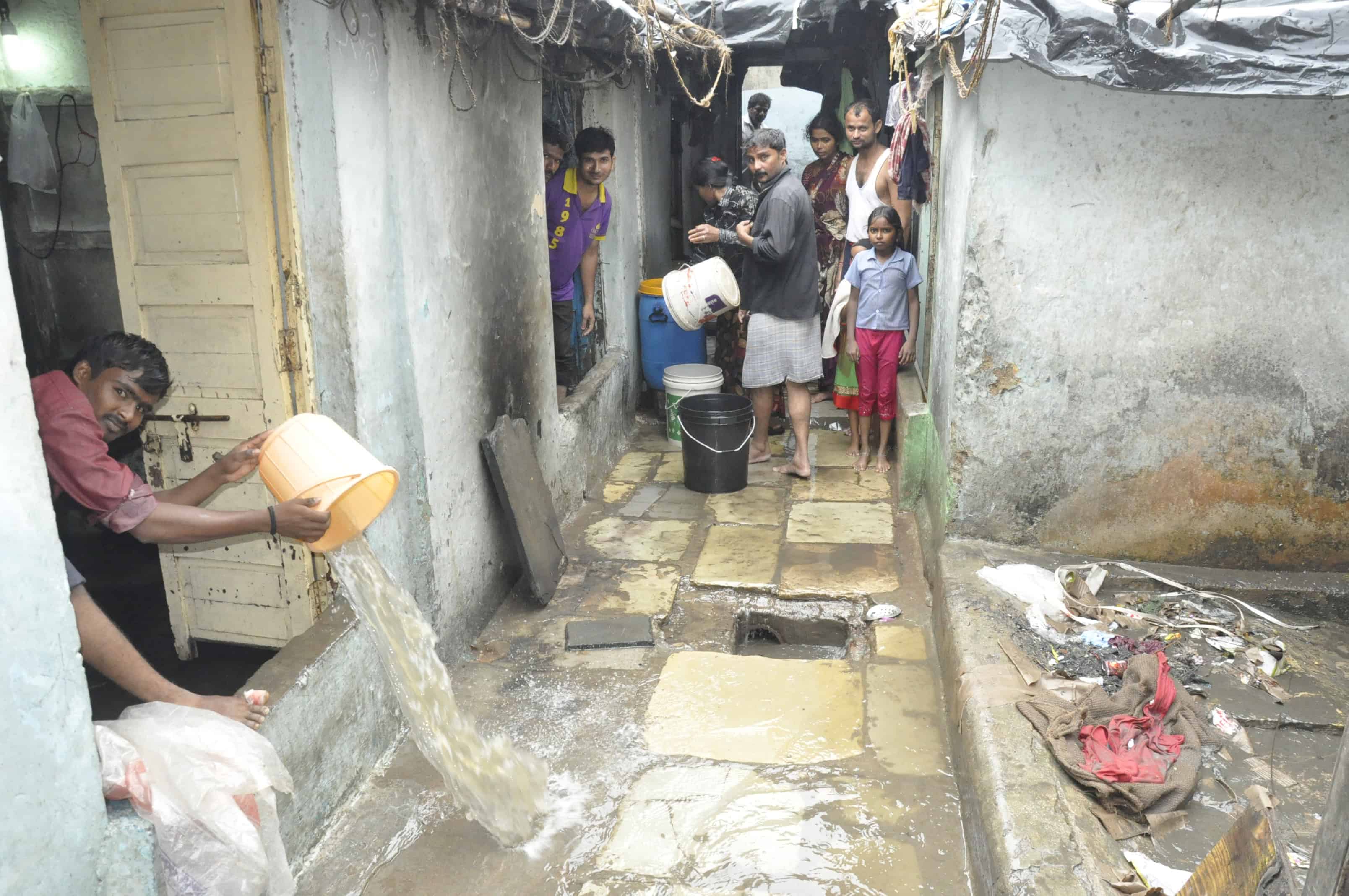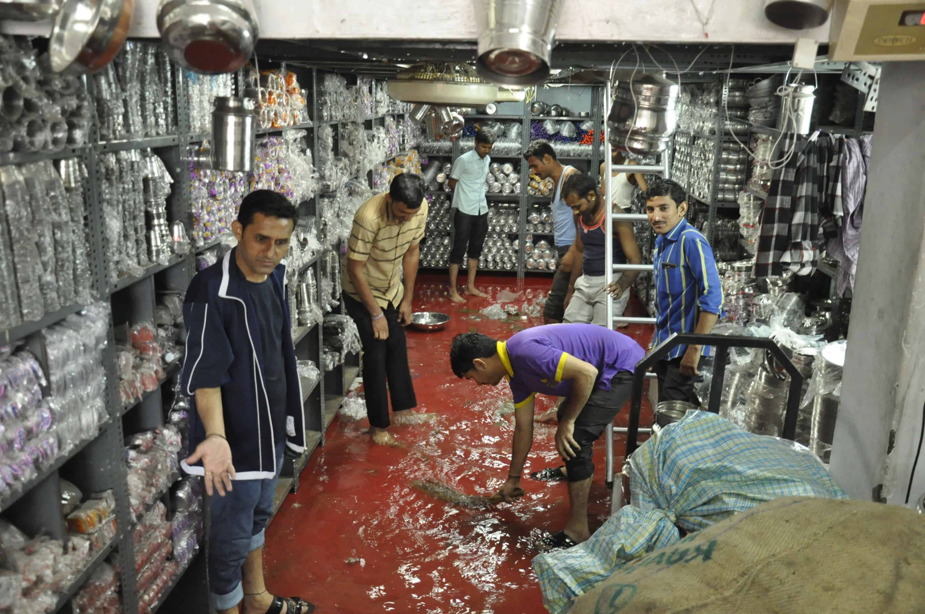 Heavy rain which lashes Hyderabad and its environs from early Wednesday morning. House collapses, water logging of roads, and inundation of several slums were reported in different parts of the city.(Pic. Mazher)