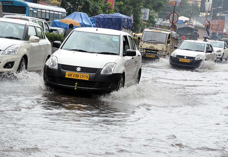 KOLKATA, SEP 3 (UNI):- Traffic slowly passed during heavy rain in Kolkata on Saturday. UNI PHOTO – 111U