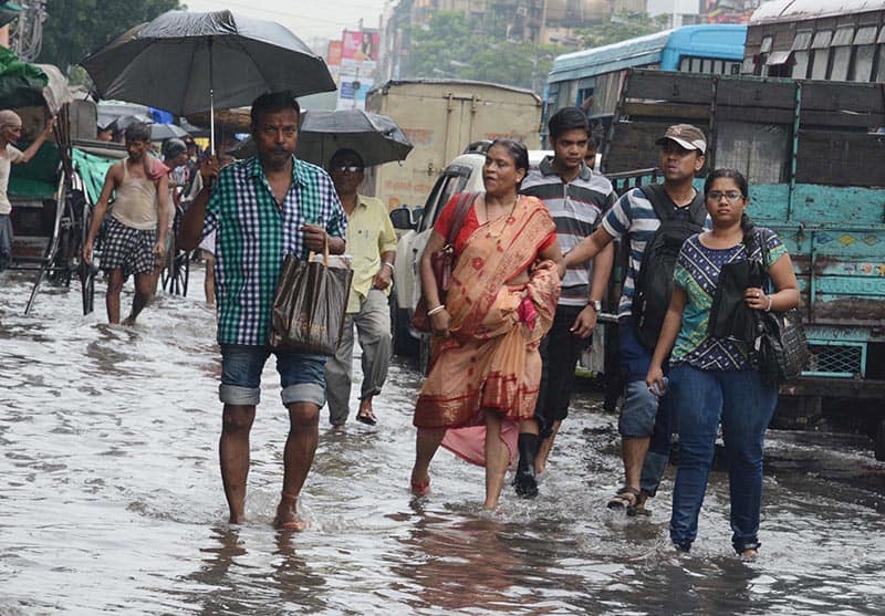 KOLKATA, SEP 3 (UNI):- People wading through waterlogged road during heavy rain in Kolkata on Saturday. UNI PHOTO – 114U