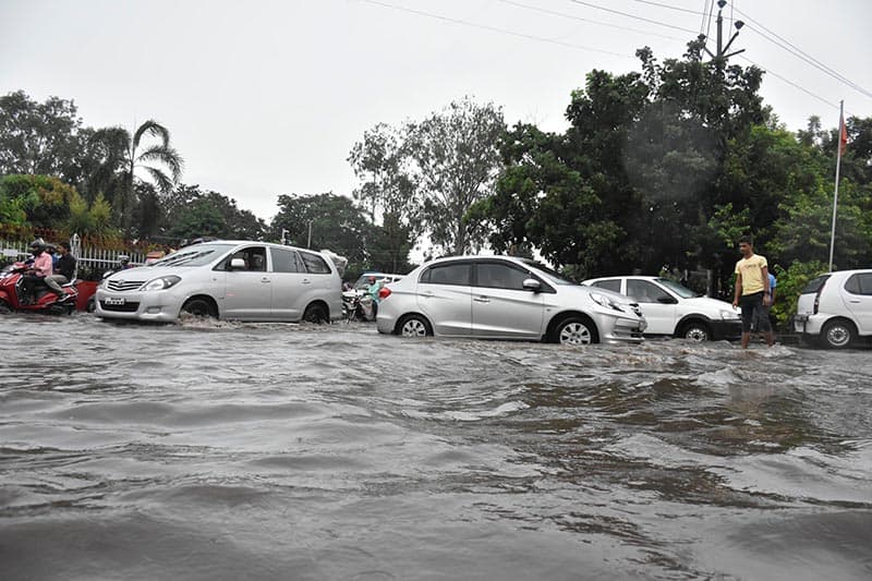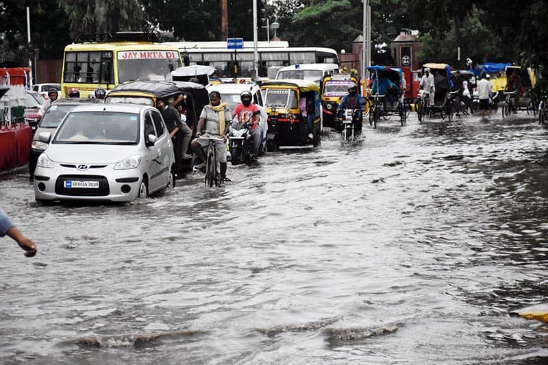 PATNA, SEP 6 (UNI):-Traffic moves slowly at waterlogged roads after heavy rains in Patna on Tuesday. UNI PHOTO -39U