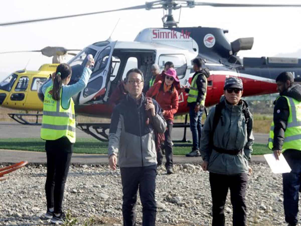 Helicopters were sent out on Saturday to rescue about 200 people stranded around Annapurna and other nearby mountains after the incident.