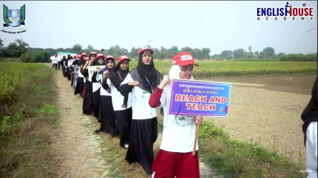 For primary and secondary school, a large building about 30,000 sqft in area, comprising more than 30 classrooms, various labs, library, administrative offices, staff rooms, visitors room, principal office, an auditorium, and sports arena has been built to accommodate about 1200 students.