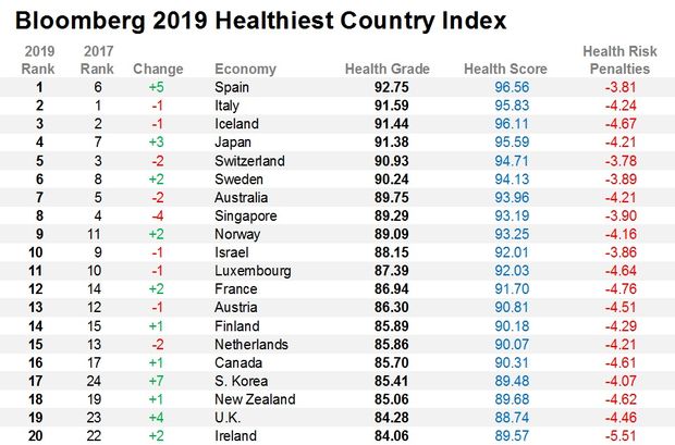 According to this year’s edition of the Bloomberg Healthiest Country Index, Spain just surpassed Italy as the world’s healthiest nation. The report ranks 169 countries based on factors that contribute to overall health.