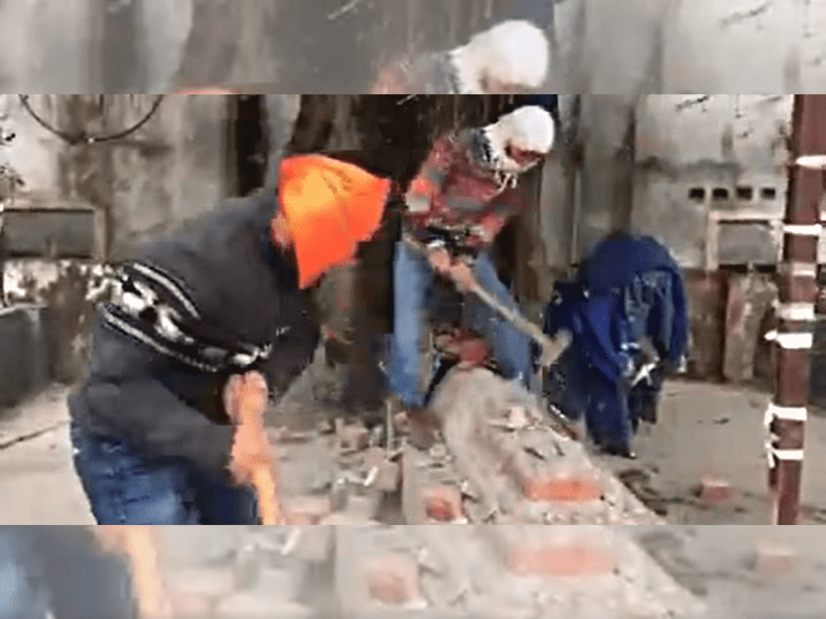 A song that praises a number of Hindu deities and demigods plays in the background, as the goons of the Hindutva outfit, Hindu Jagran Manch, tear down the shrine.