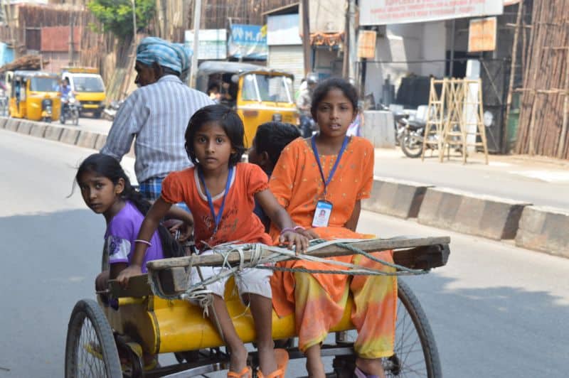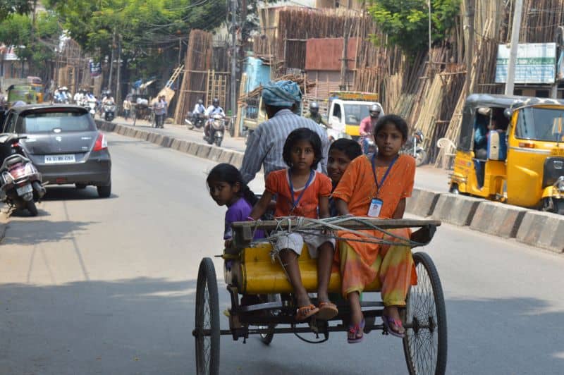 A few girl students riding a cycle rickshaw back home after getting their report cards of the annual examinations. Govt. Schools in Hyderabad declared summer holidays ( Photo: Murli)