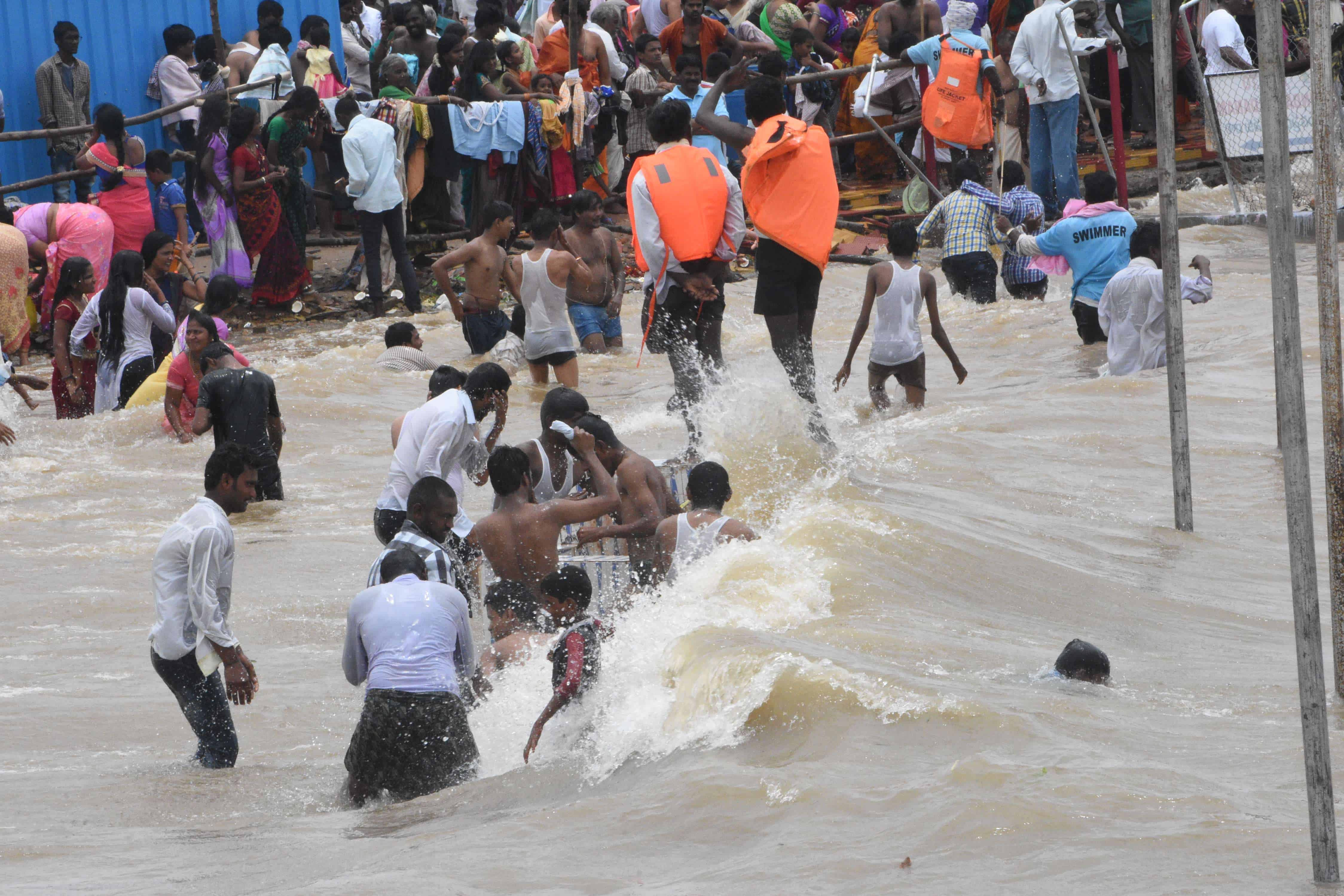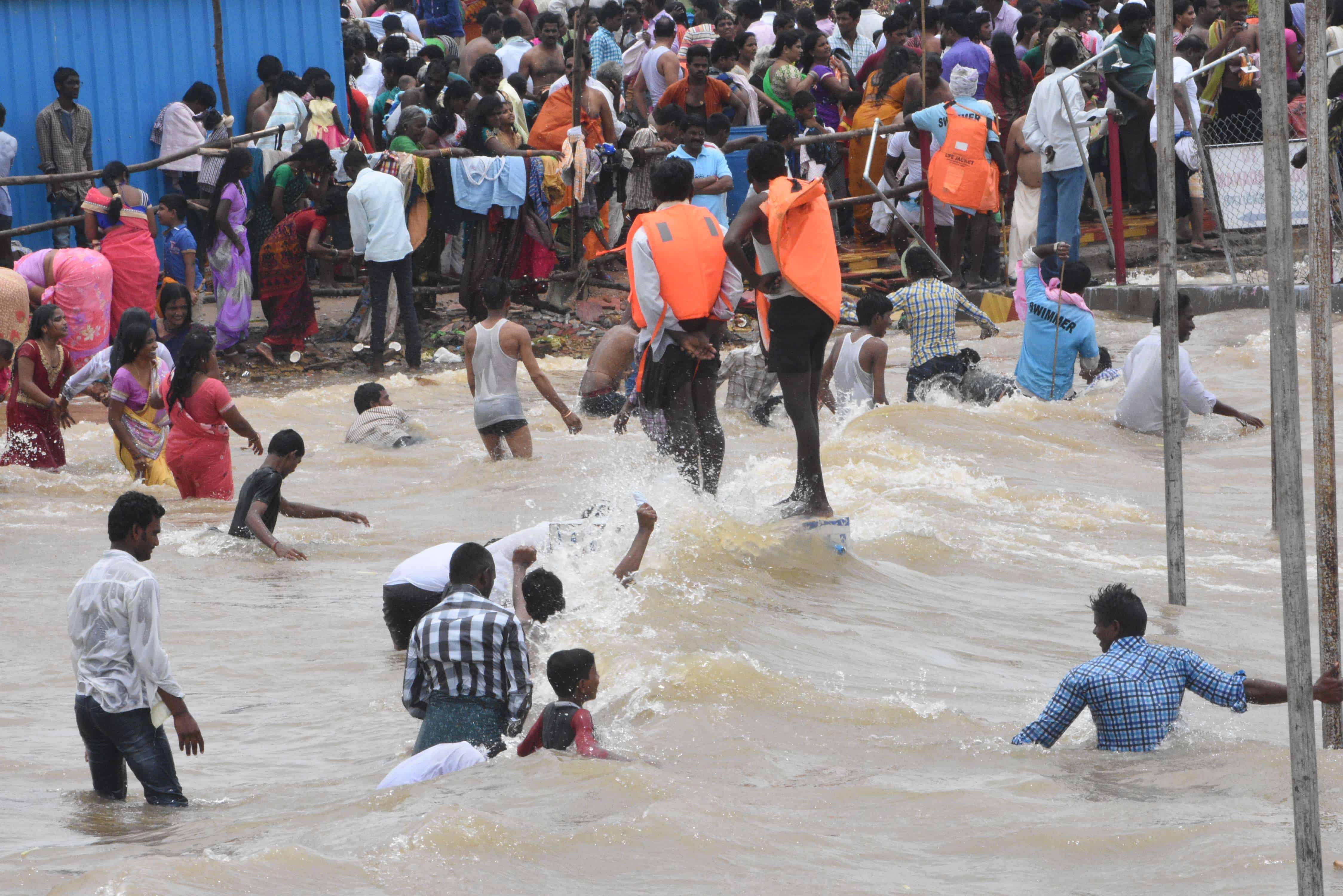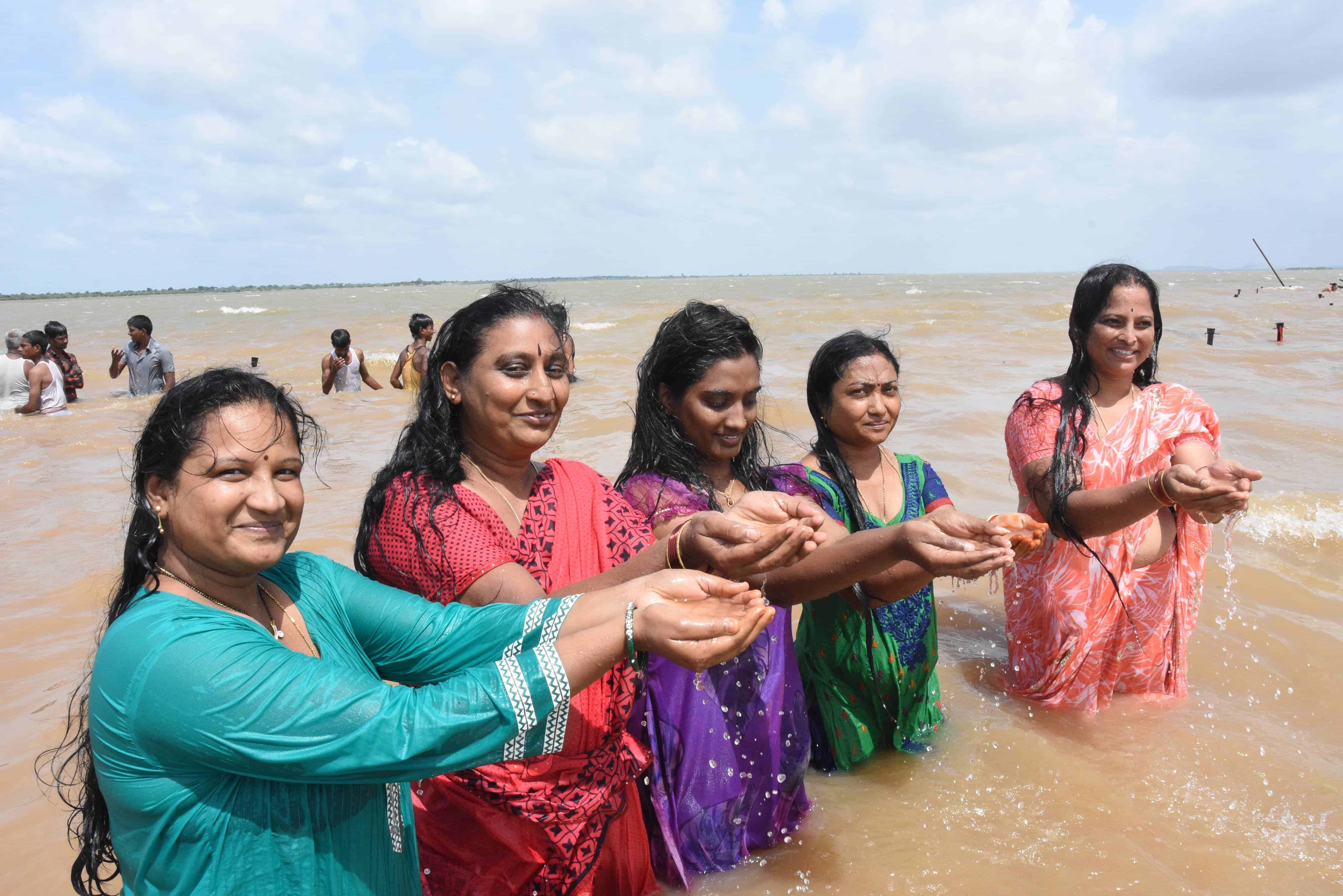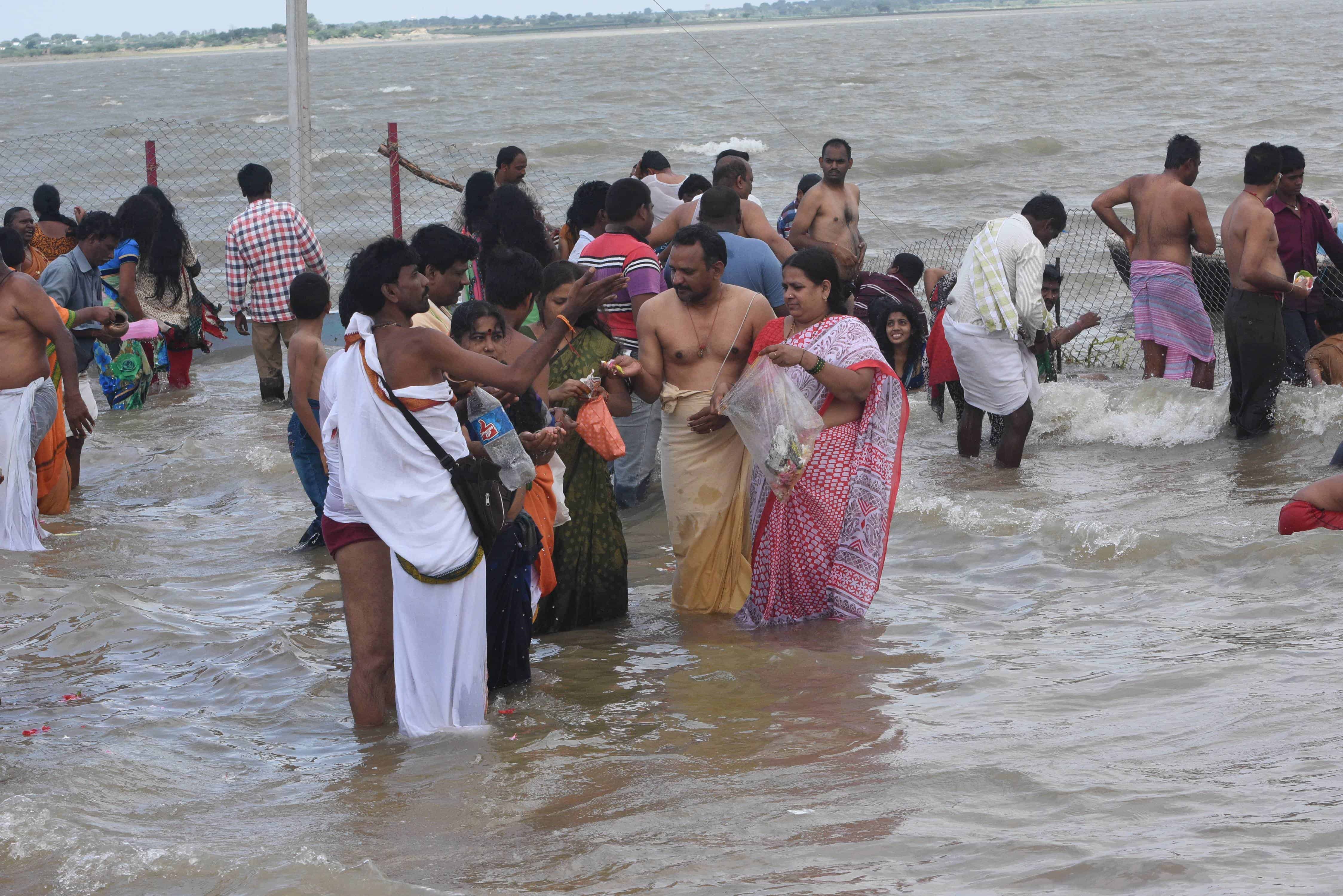Large number of devotes participated in Krishna Pushkarlu and take holy bath at Gadwal, Mehboob Nagar Ghat in Telangana State. (Photo: Zabi)