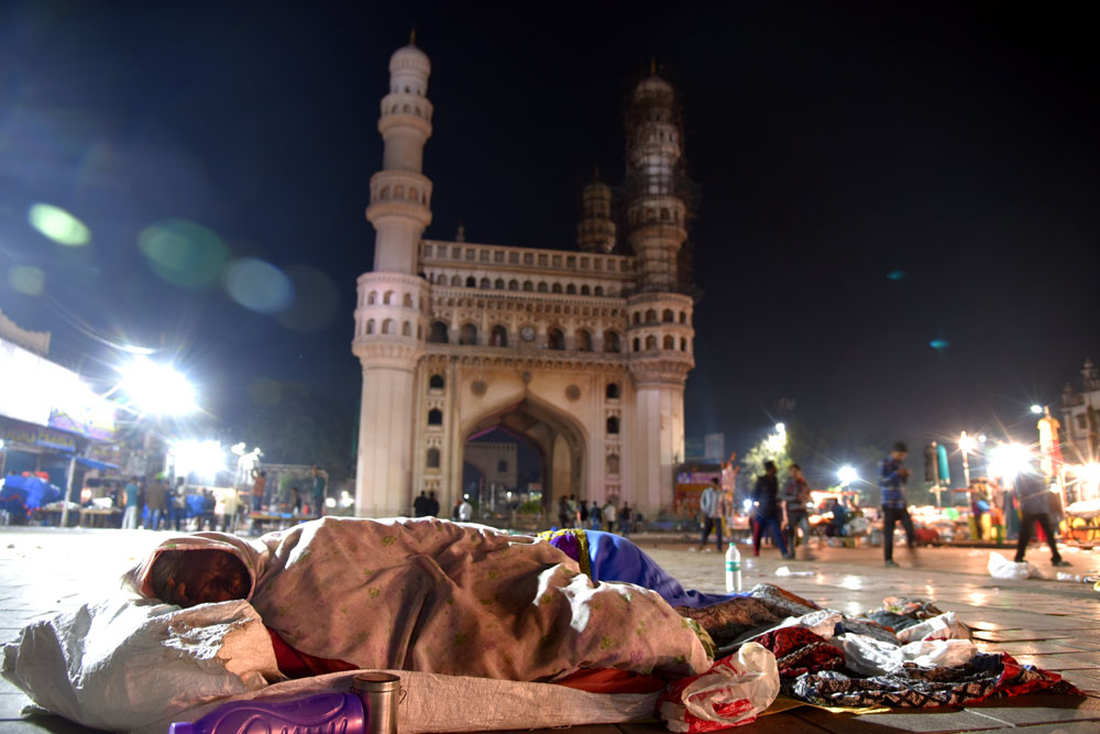 Hundreds of homeless people brave winter freezing nights, some cannot afford even a blanket sleeping under the open sky on roadside footpaths of Hyderabad. (Photo: Laeeq)