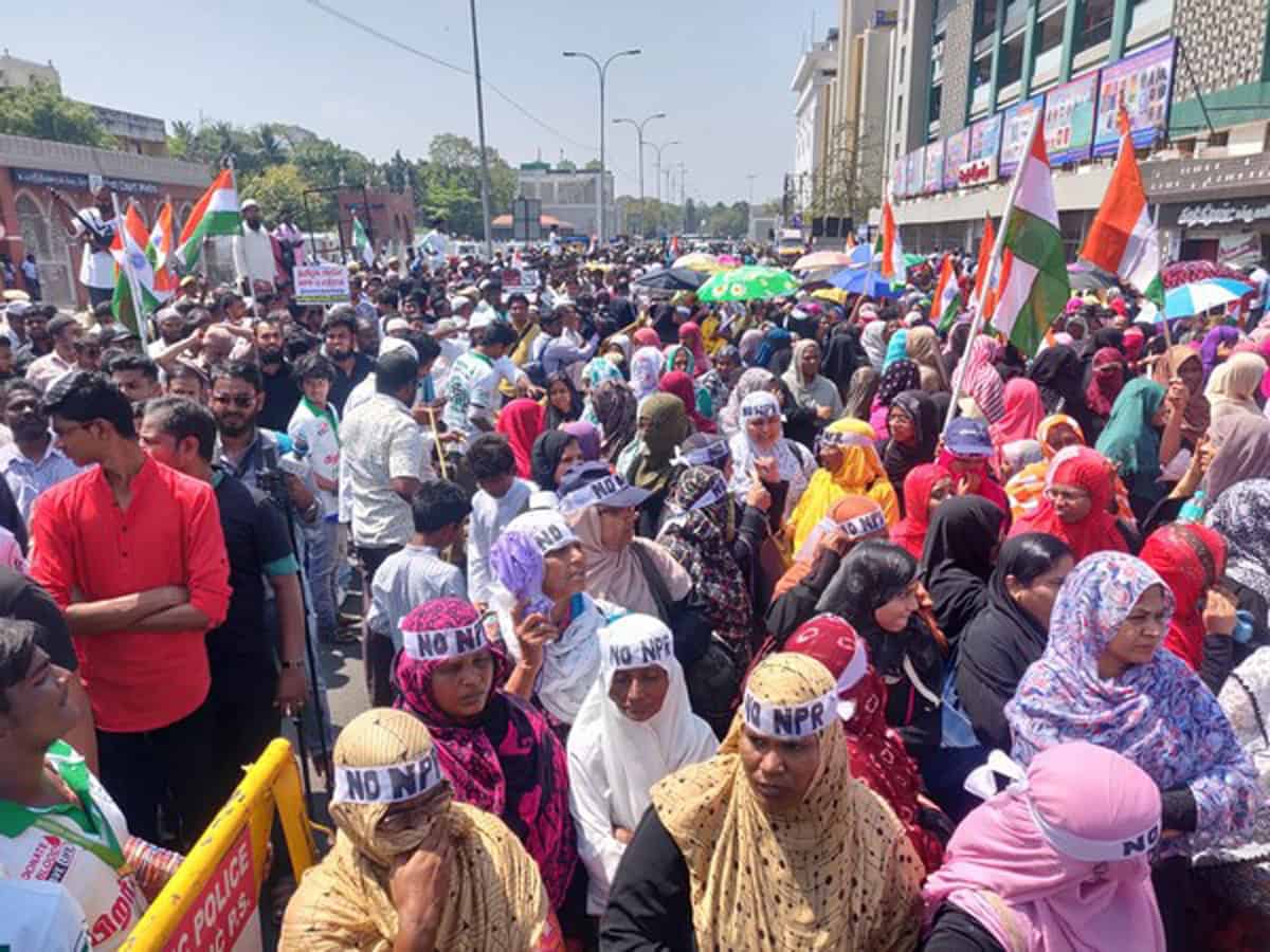 Chennai: Hundreds of protestors including members of the Tamil Nadu Thowheed Jamath (TNTJ), a non-political Islamic organization, gathered near the Madras High Court here on Wednesday to demand revocation of the Citizenship Amendment Act (CAA) and against the National Population Registrar (NPR).