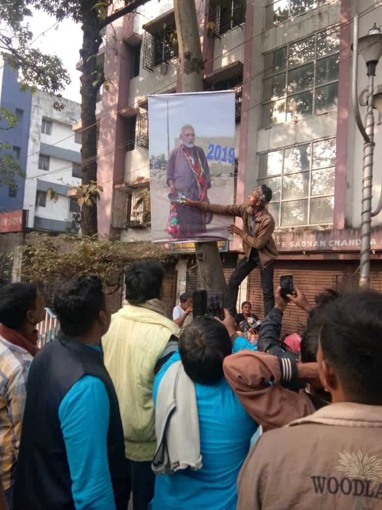 In the video, one can see how photoshopped picture of PM Modi was erected on the road in Kolkata.