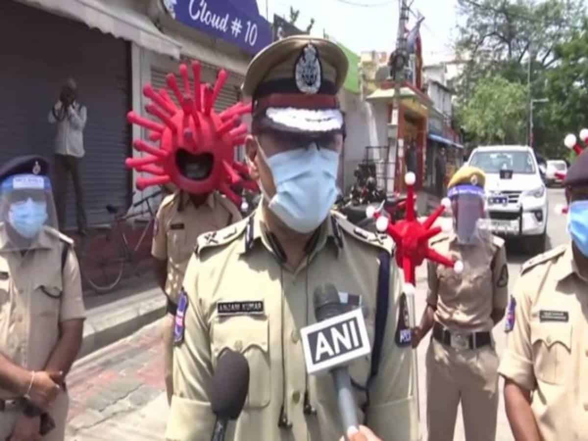 The Hyderabad City Police Commissioner today inspected various police check posts across Hyderabad and also visited the Wesley College check post in Secunderabad where police personnel were found wearing COVID-19 shaped helmets to spread awareness.