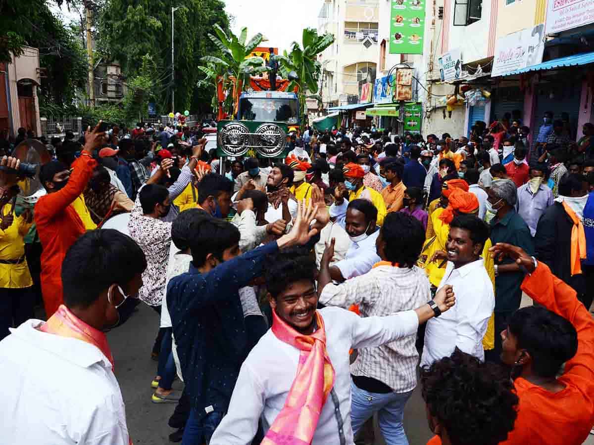 The festival committee chairman Singari Sudarshan, Rajendran, and convenor Sandeep Paraj created the Ganapati idol with the designer.
