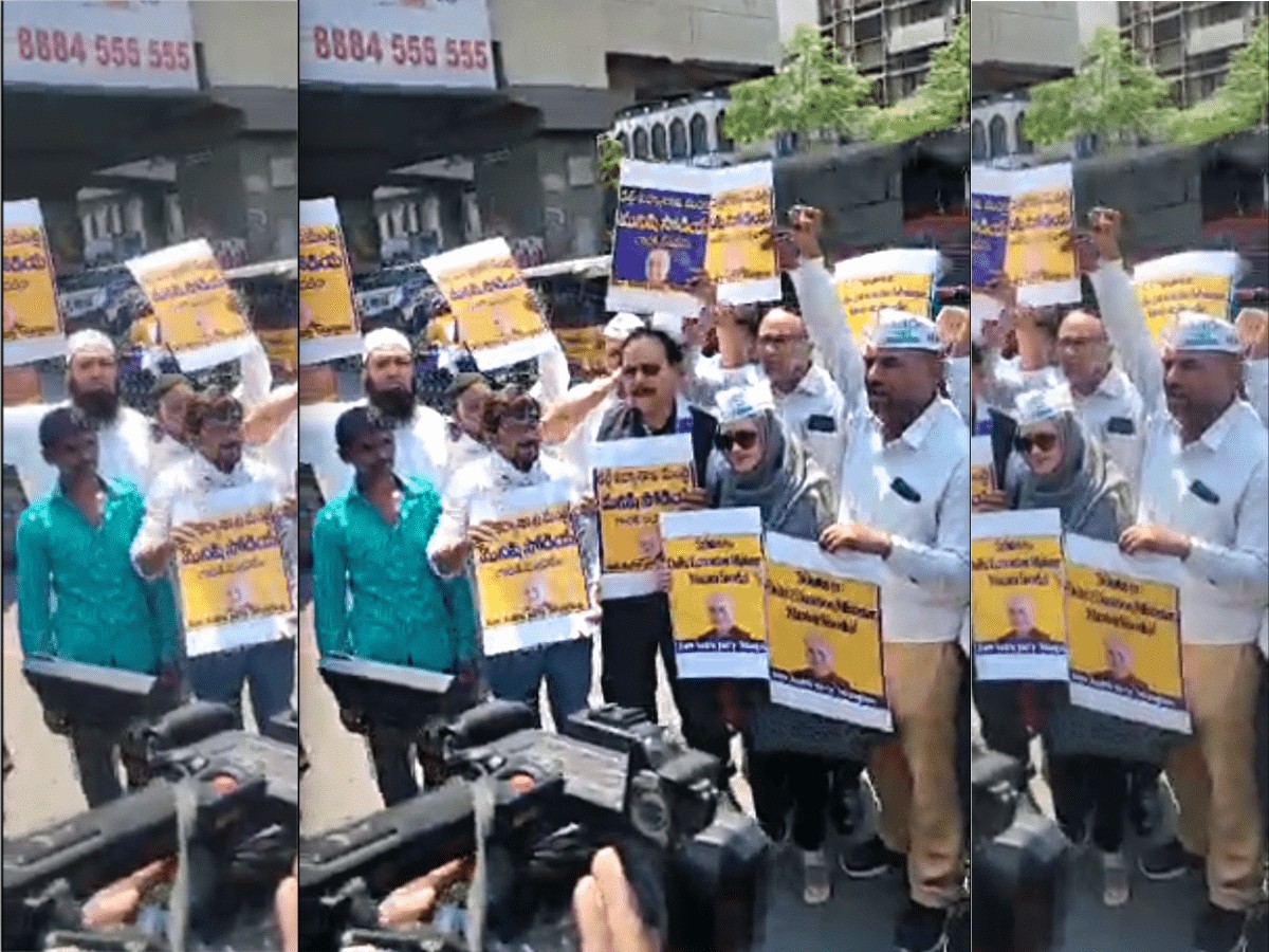 Hyderabad: Members of the Aam Aadmi Party (AAP), as part of its nationwide protests against the arrest of Delhi deputy chief minister Manish Sisodia, staged a protest at the BJP office in the city on Monday.