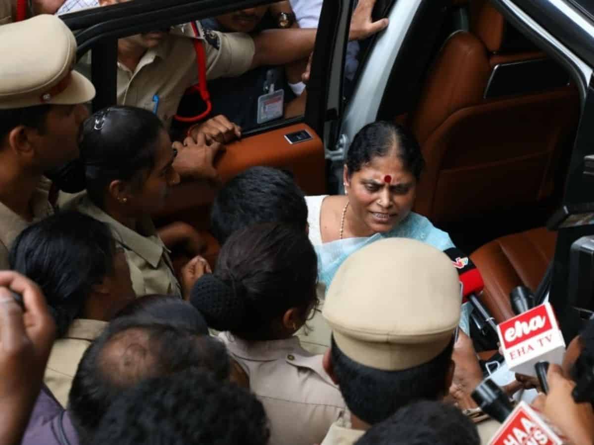 As the police refused permission to enter the police station, Vijayamma had an argument with the police. When some police women tried to forcibly make her sit in her vehicle, she resisted and even slapped a constable.