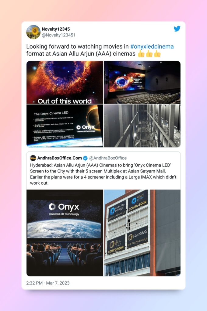 Say goodbye to standard cinema projectors and hello to the cinema of the future! You’ll be transported to another world with the fully functional LED screen, which features stunning visuals and high contrast colours that will captivate you. Plus, with Asian Group, one of the leading film distribution companies in the Telugu film industry, partnering with Allu Arjun and his family for their first joint venture, you can expect nothing less than the best.