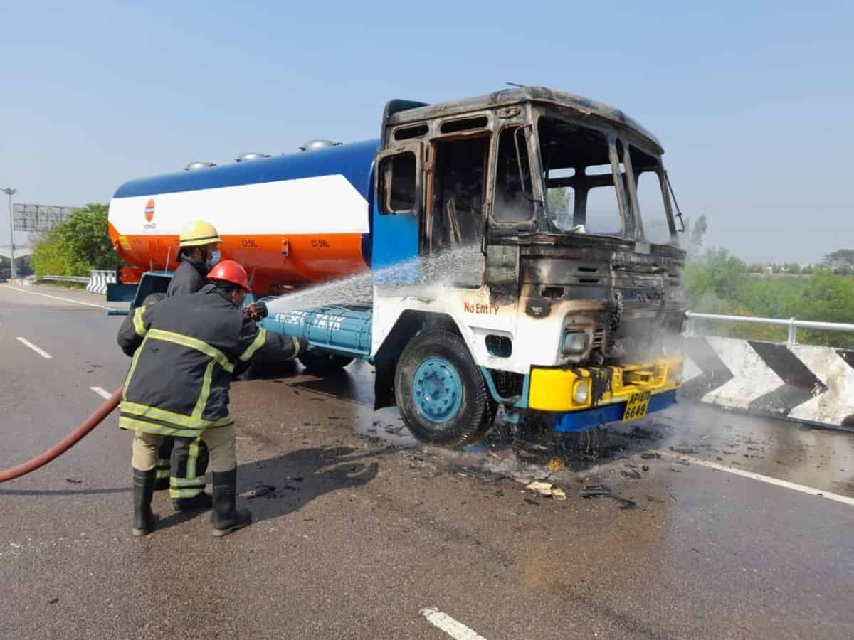After the incident, a fire tender from the Shamirpet fire office rushed to the spot and doused the fire before explosion.