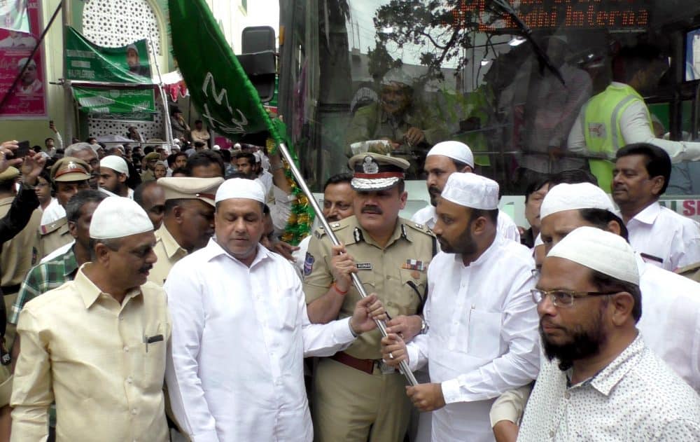 City Police Commissioner Mr. Anjani Kumar, IPS flags off 12th flight for annual hajj pilgrimage on Tuesday in Hyderabad. Also seen are Mr. Shahnawaz Khasim IPS, Imam Makkah Masjid, Masihullah Khan, Chairman Hajj Committee, Mohammed Saleem, Chairman, Wakf Board and Prof. S.A. Shukoor, Special Officer, Hajj Committee. (Pics. Faheem)