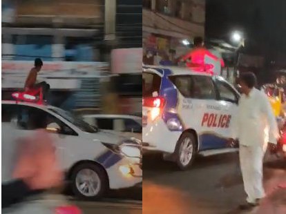 Hyderabad: A man, who was in inebriated condition, created ruckus in Asif Nagar area of Hyderabad by climbing on to a moving police patrol car.