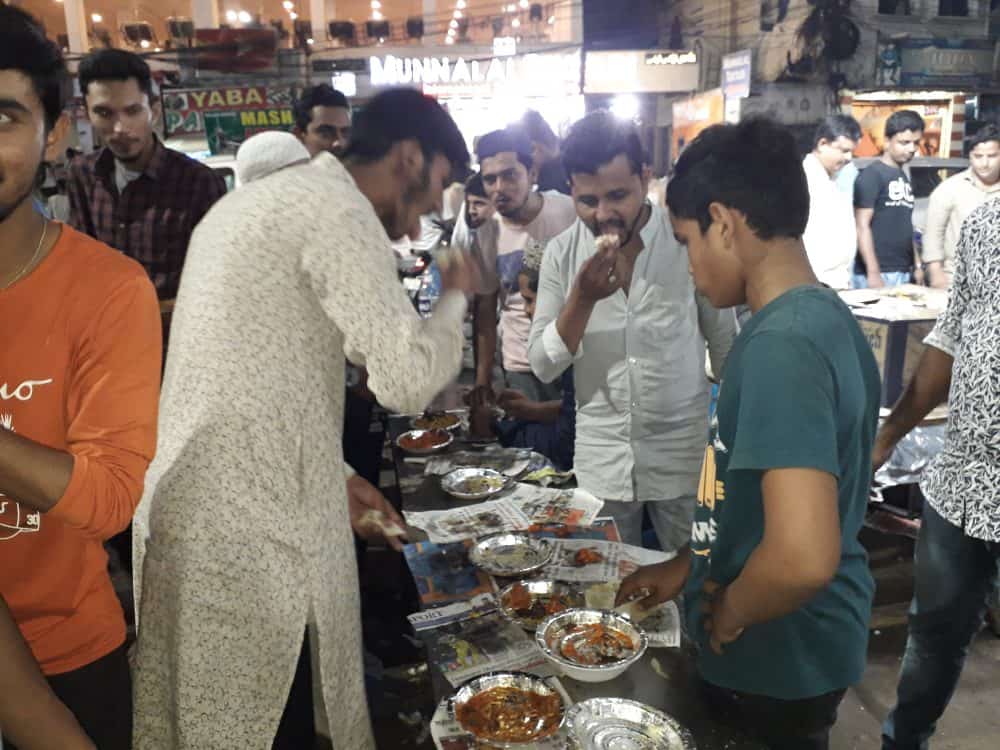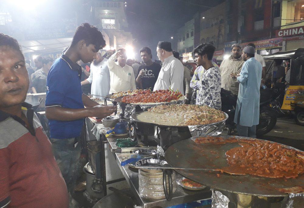 The holy month of Ramzan is half-way through and in the Old City of Hyderabad, Charminar is the epicenter of all the festivities. As one crosses the Puranapul and enters Old City, a sea of humanity can be seen flowing towards the Charminar, on its way trying to find its favorite fruit vendors, bangle shops, haleem/biryani joints, and also the slightest space in between an entire city moving towards nowhere in particular. This is Old City during Ramzaan. Vendors and food lovers can be seen at Moosa Bowli near historical Purana Pull Road, to tast Pather ka Gosht, Chicken, Murg, Roti, and Arbi Kahwa. (Photo: Zabi)
