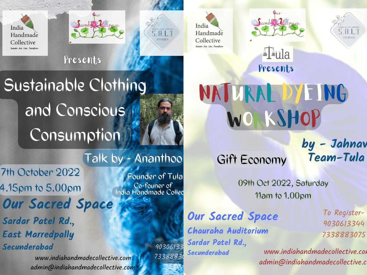 “There will be hands-on workshops on ‘Natural Dyeing’, ‘Hand-Spinning’, ‘Coconut Shell Crafts’ along with cultural events and a talk on ‘Sustainable Clothing’ by Shri Ananthoo from Chennai,” the release said.