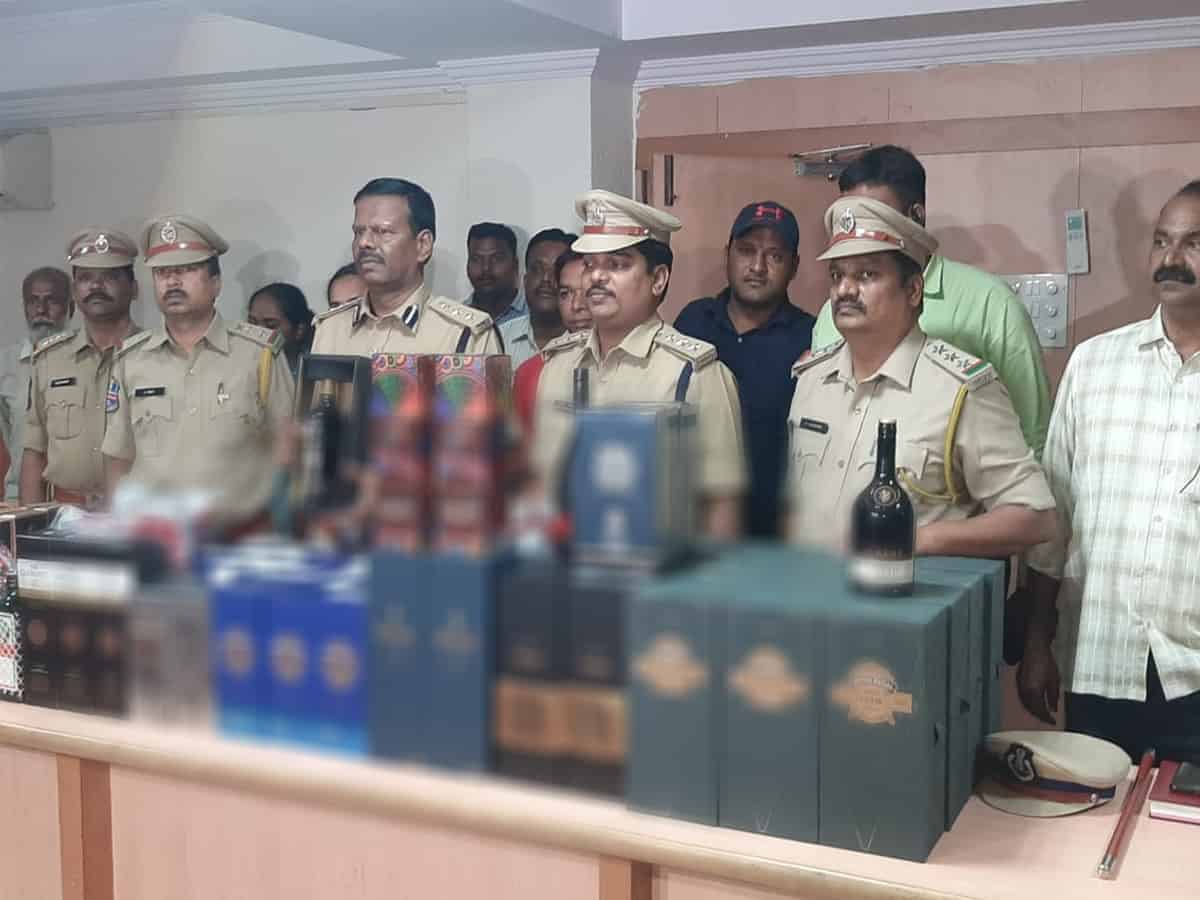C Vivekanandareddy, Deputy Commissioner of Excise said, on credible information, officials of Excise Enforcement Department raided a travel agency office opposite to Nampally Railway station. During the raid the excise officers have caught prime accused T Venkatesh (55) red-handed and seized 12 one litres bottles of Chivasregal Whisky from his possession.