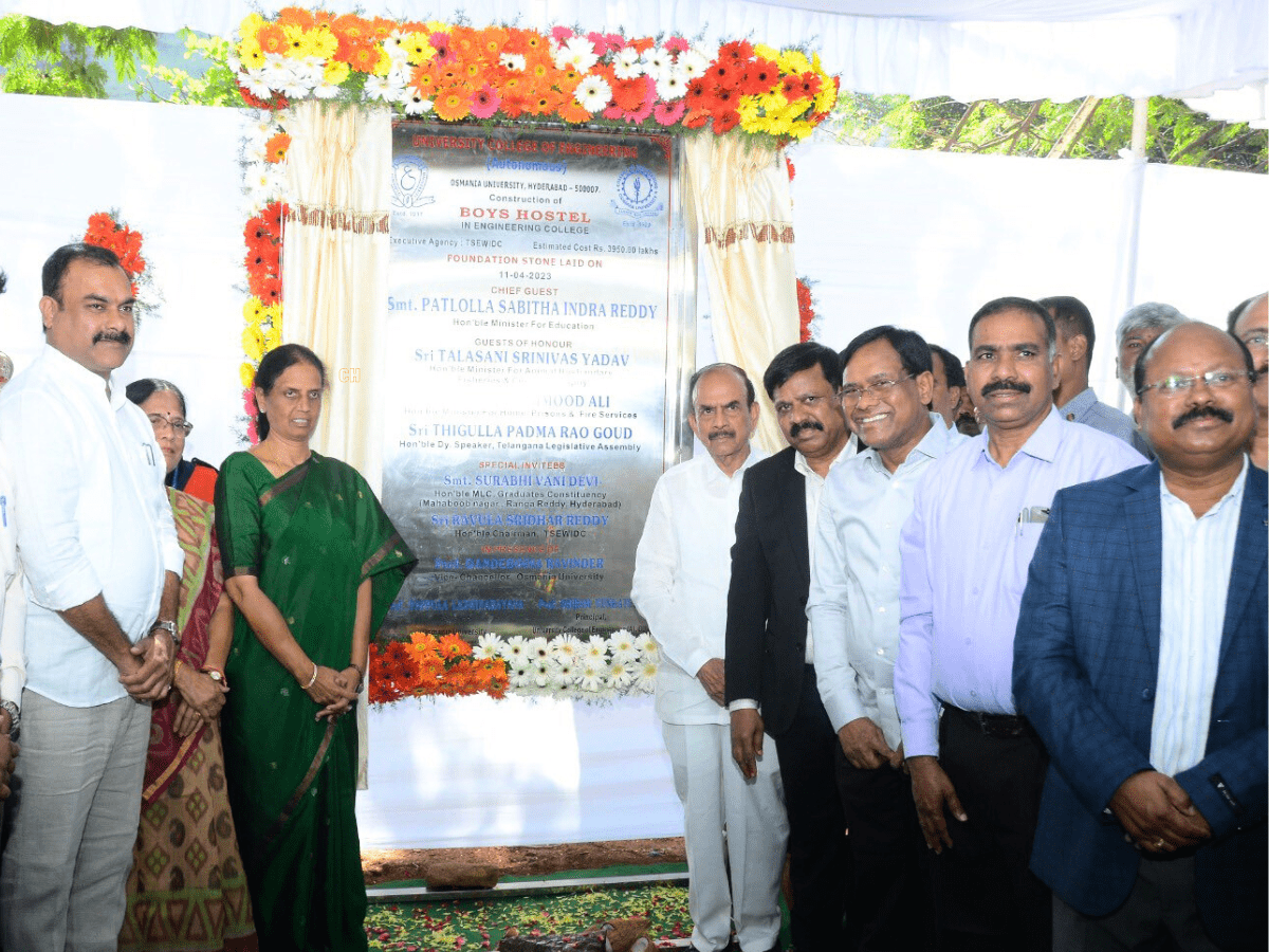 Hyderabad: Foundation stone for the new 500 bedded boys’ hostel at Osmania University was laid by Telangana education minister P Sabitha Indra Reddy at the varsity campus on Tuesday.