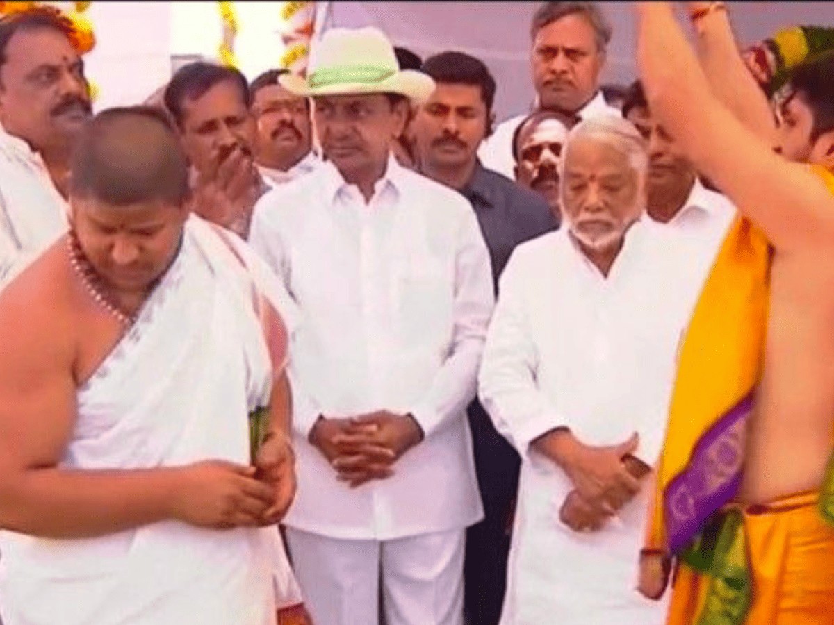 Following the ceremony, KCR participated in puja, rituals organised for the occasion and also planted a sapling to mark the new initiative.