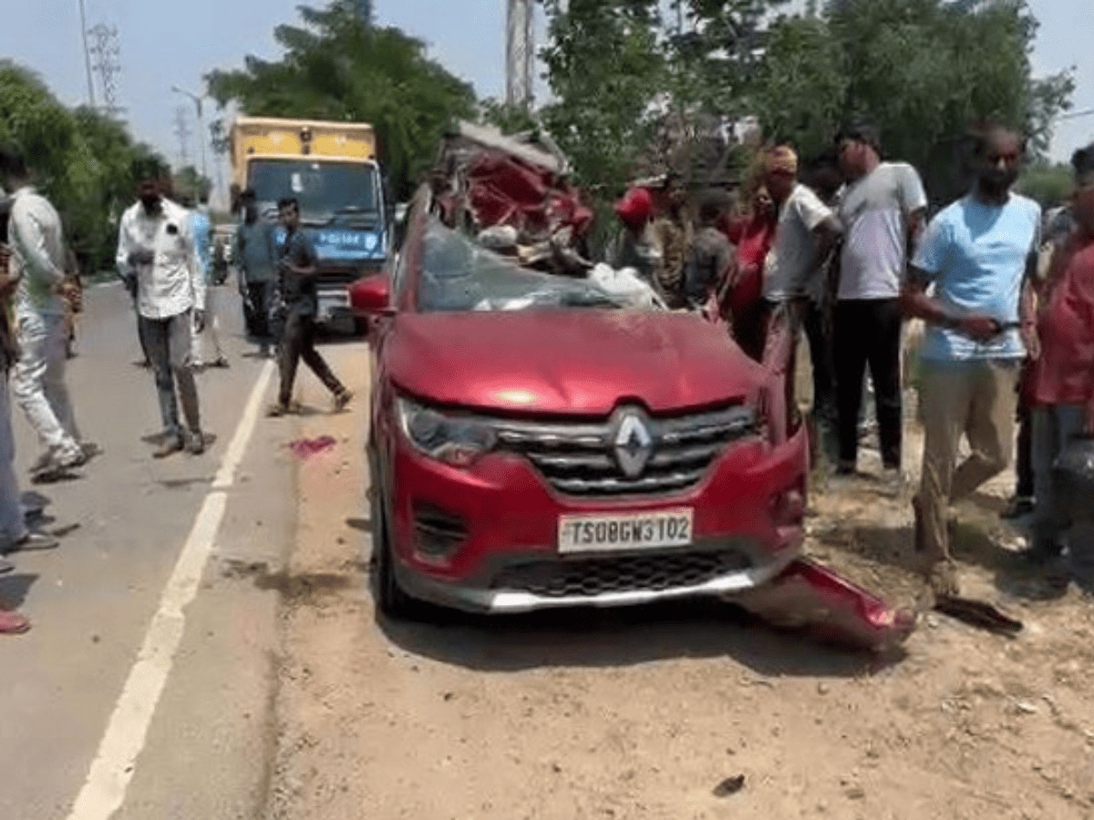 Preliminary investigation by the police show that the car was being driven in a rash and negligent manner. The car driver apparently lost control while trying to overtake a RTC bus and crashed the vehicle into a stationary truck from behind.
