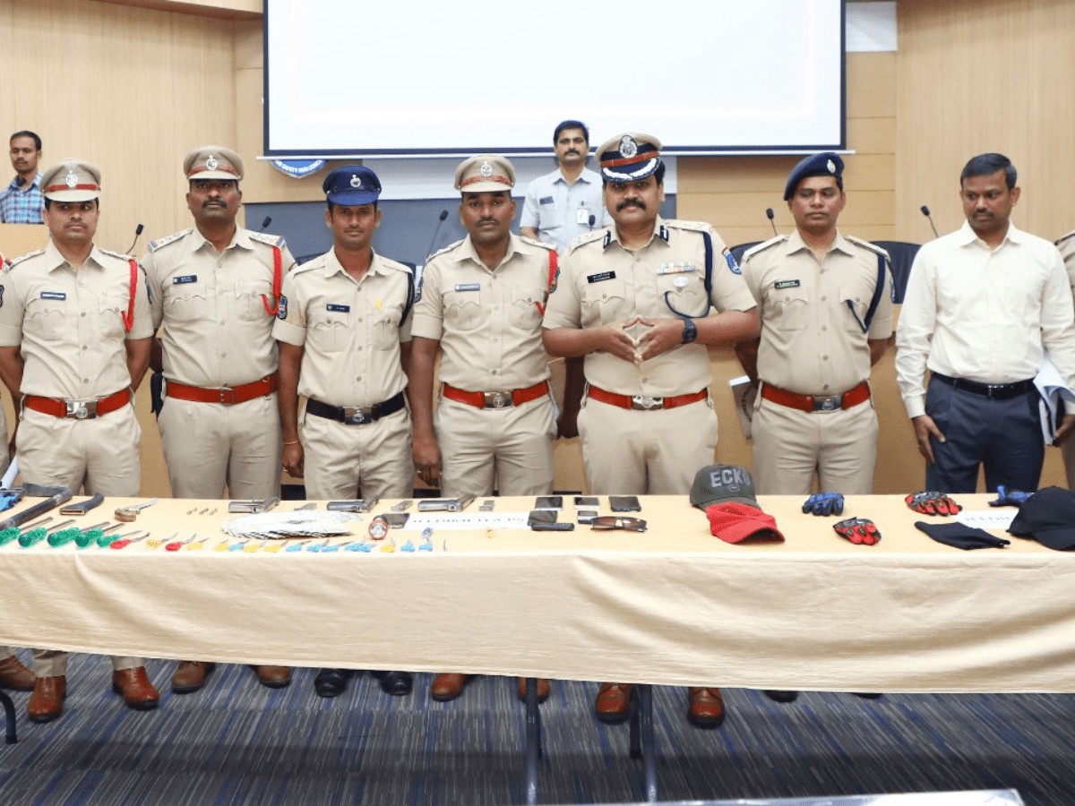Police seized three pistols, six bullets rounds, 16 scissor blade divided pieces, one knife, five big screwdrivers, one torch light, three monkey caps, one cutter, one shovel, one TATA Indica Car (stolen from Guddimalkapur) and net cash worth Rs 70,000 from their possession.