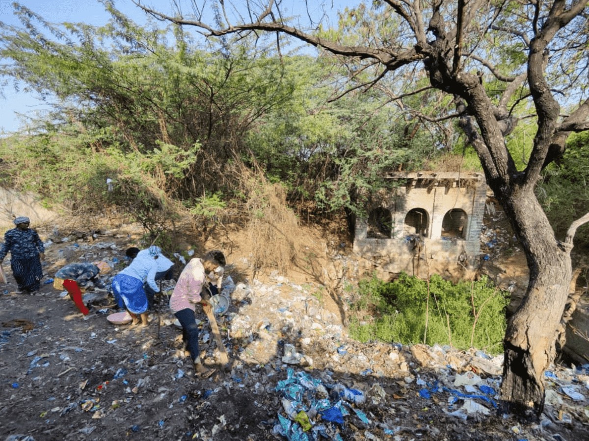 Over 100 students and volunteers from various organisations joined hands in cleaning the periphery of the stepwell on Monday.