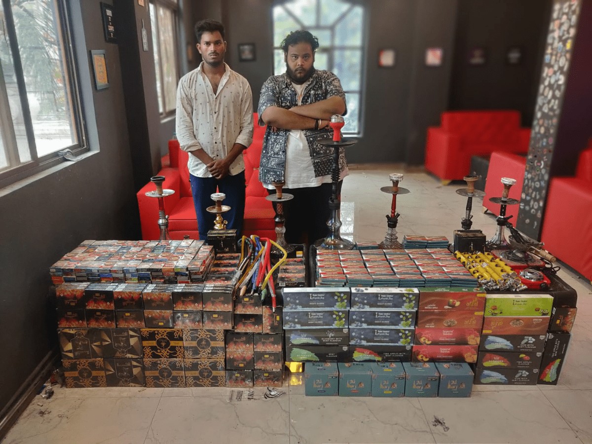 In the raid, 22 hookahs worth Rs. 60,000 were recovered from the accused. Mirza Ibrahim Ahmed (23), Mohd Wajeed (22) were arrested while the third person Mirza Furqan Baig managed to escape.