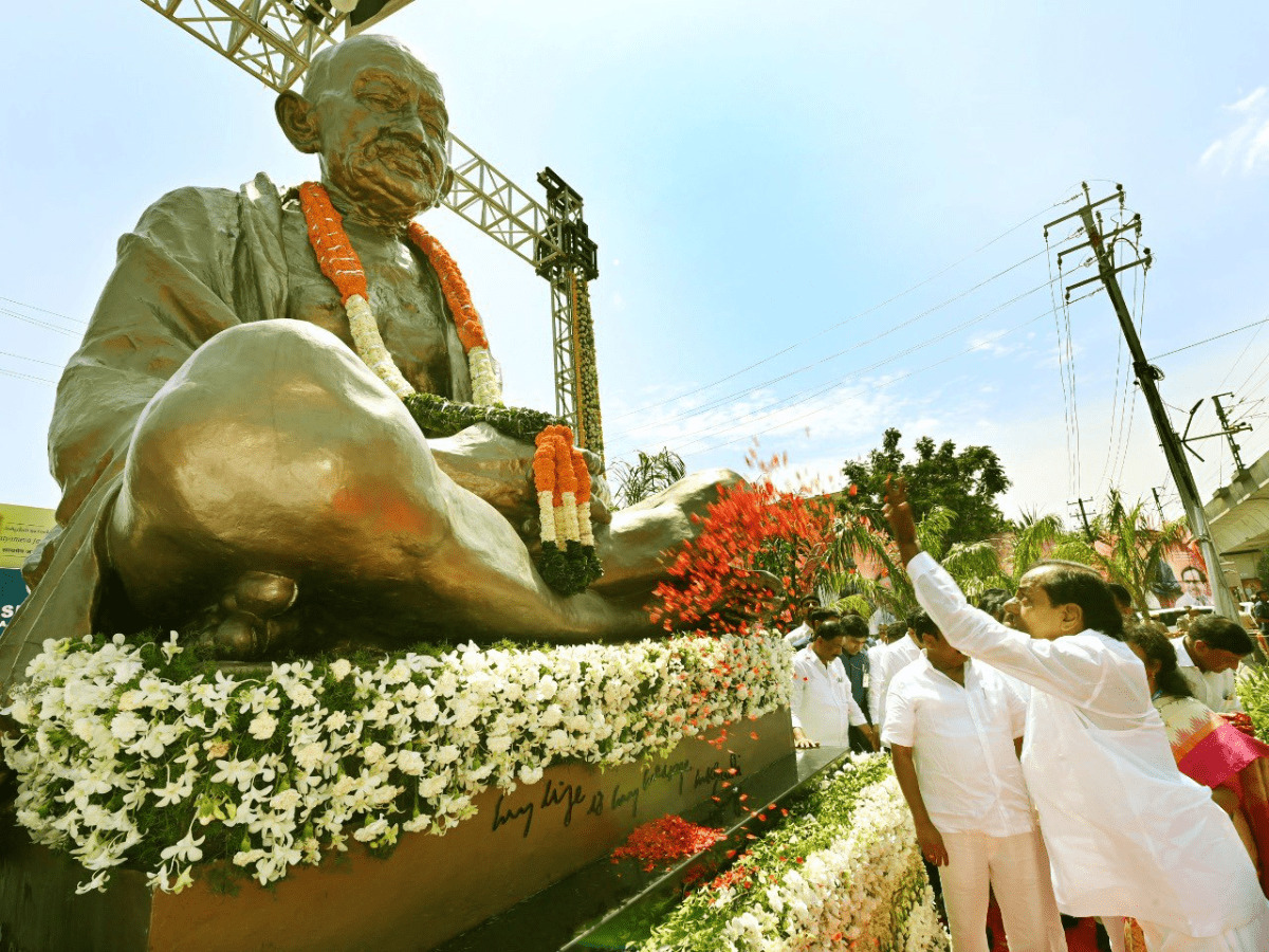 Speaking to the crowd, he declared that no matter what efforts some groups made to denigrate Gandhian ideologies, they would fail. “The UNO had adjudged Mahatma Gandhi as the Man of the Millennium and his principles would remain relevant and continue to inspire mankind across the globe,” KCR said.