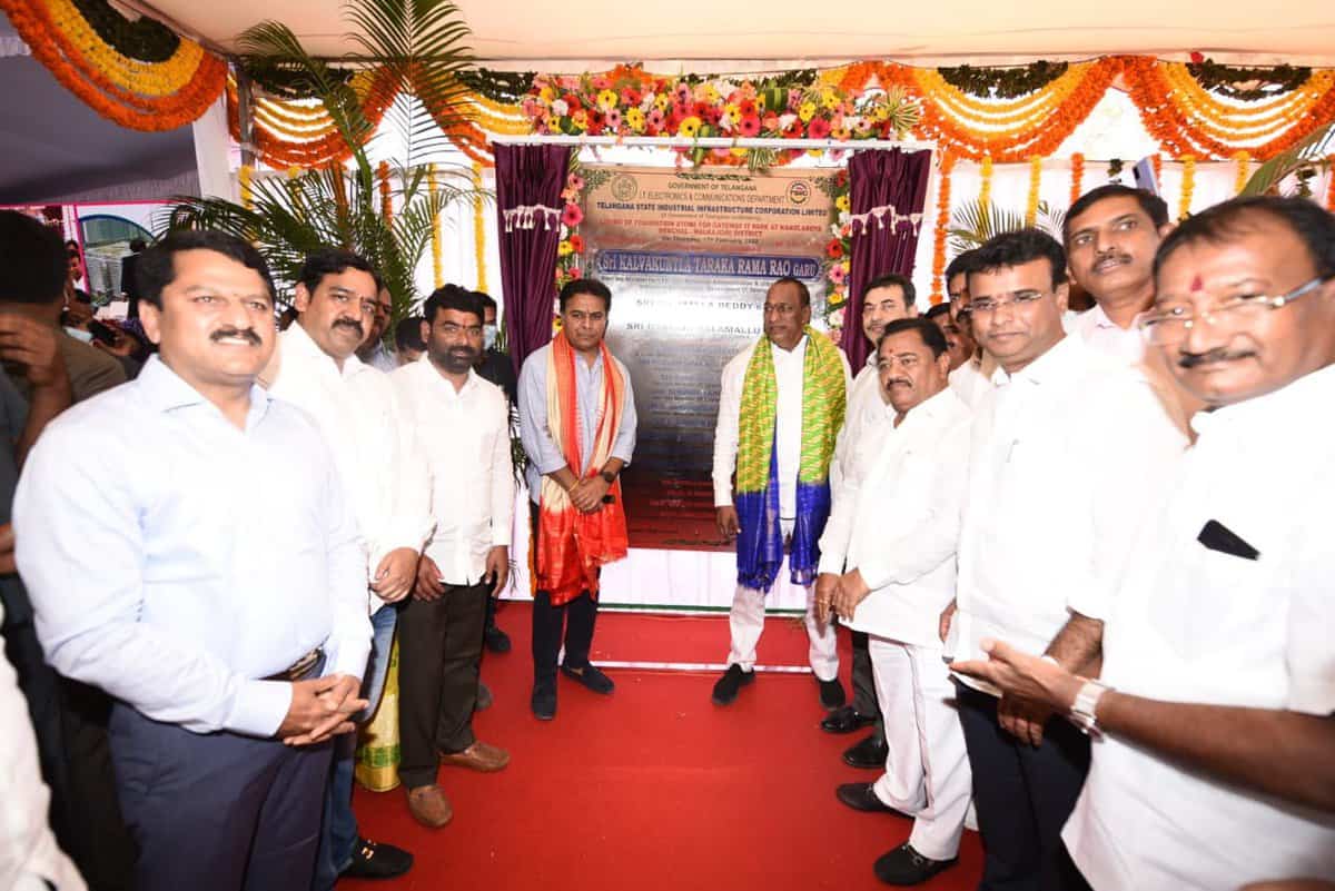 Hyderabad: IT Minister KT Rama Rao and Labour & Employment Minister Ch Malla Reddy laid the foundation stone for the upcoming Gateway IT Park at Kandlakoya on Thursday. The park is to be set up at Kandlakoya junction on Outer Ring Road. The programme coincides with Chief Minister K Chandrasekhar Rao’s birthday on February 17.