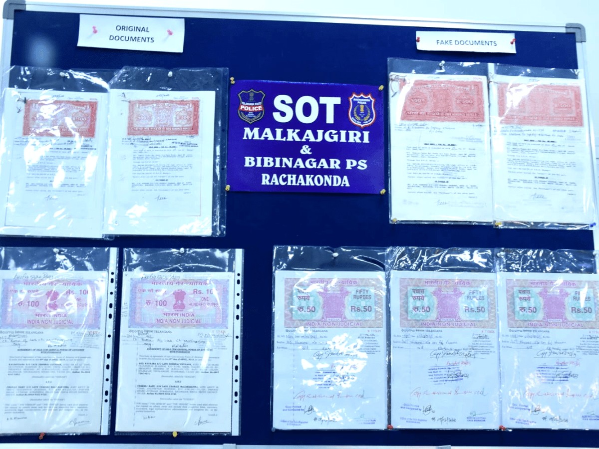 Hyderabad: Seven of a gang involved in illegal sales of land, by preparing fake sale deed documents were held in a raid by the Special Operations Team (SOT) of Malkajgiri Zone, Rachakonda along with Bibinagar Police on Saturday.