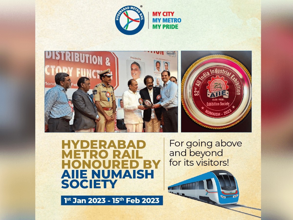 The HMR department was recognised and felicitated by the Numaish society for its seamless efforts in facilitating visitors travelling by metro to reach the 82nd AIIE Numaish-2023 exhibition after the exhibition wrapped on Wednesday.