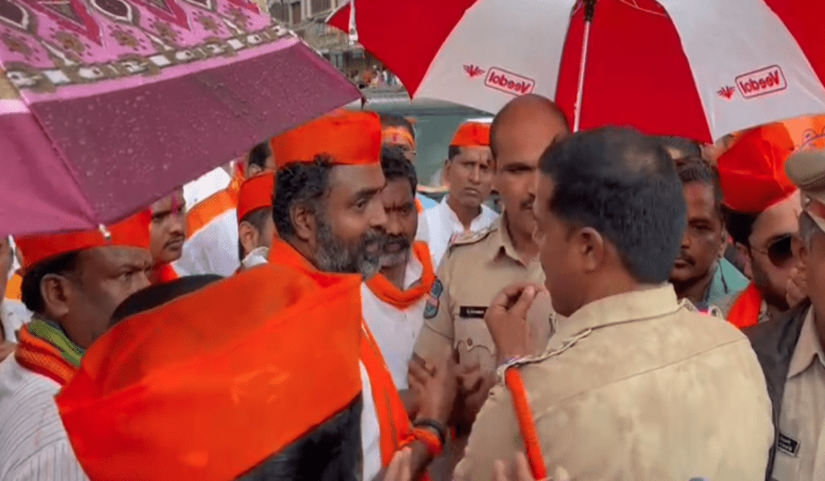 Hyderabad: Mild tension prevailed at Shahalibanda when former corporator and BJP leader A Jitendra picked up an argument with police when they attempted to stop the band and slow down the procession on Friday afternoon.