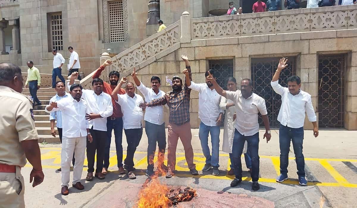 Senior members of the Osmania University-Joint Action Committee (OU JAC) were detained after they burnt effigies of Telangana chief minister K Chandrasekhar Rao (KCR).