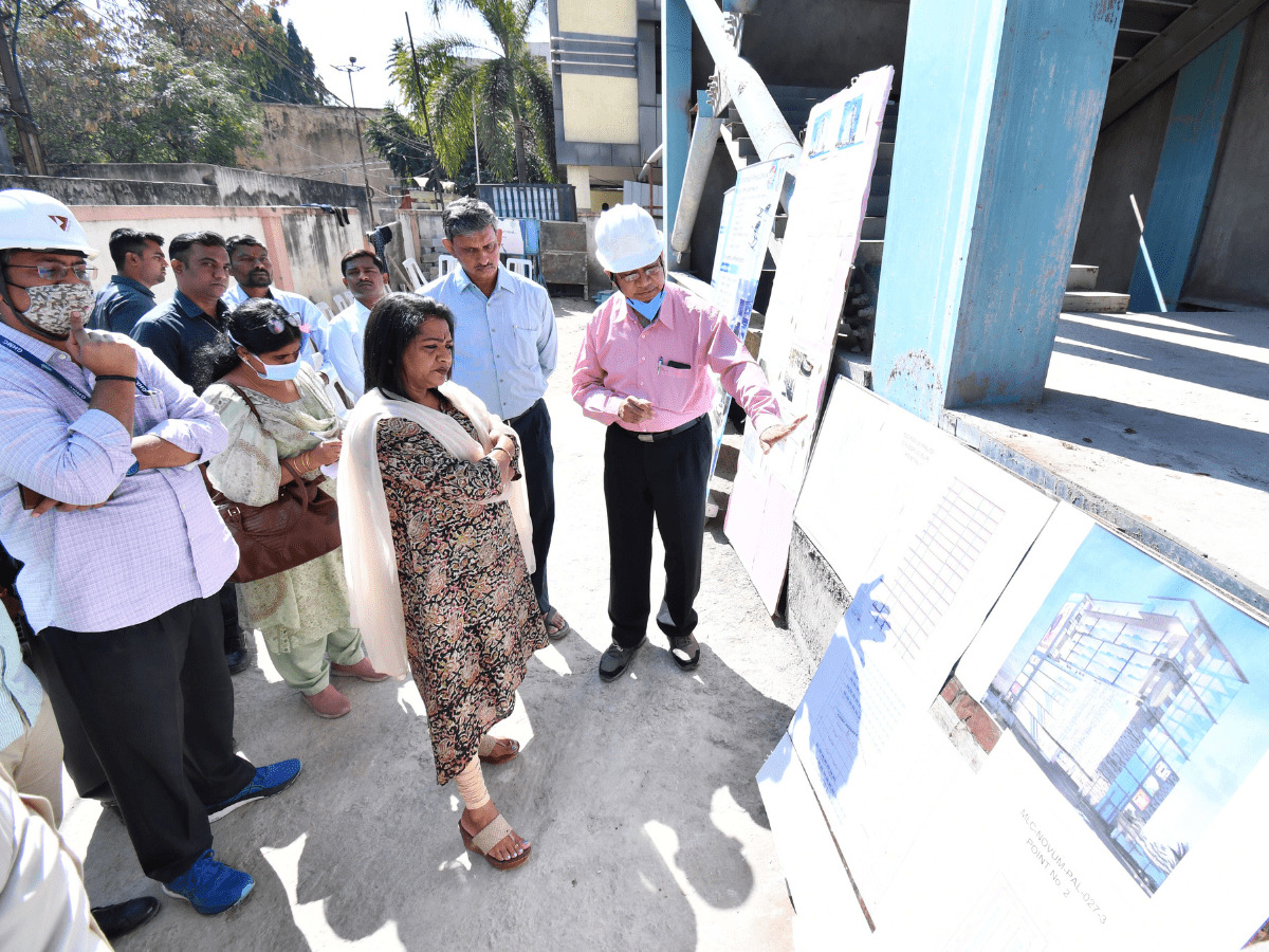 Mayor Gadwal Vijayalaxmi on Monday paid a visit to the parking complex construction site and directed officials to expedite and finish the work by the given deadline.