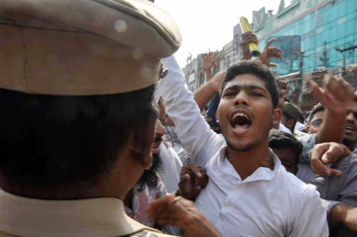 Protests, which appeared as unplanned, were seen at the Jama Masjid Darusshifa. Around 150 people gathered in the vast grounds and raised slogans. However, Maulana Jafar Pasha announced from the speakers that protesters should go home.